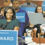 It was appropriate that the Democratic crowd was still penned into a holding area on the lawn of the Greeley Independence Stampede grounds at 10:00 a.m, as the Secret Service completed its security sweep of the 4-H exhibit building. Unfortunately, there was a hypothermic Arctic breeze that set teeth chattering and sent ticket holders back to their cars for gloves and quilted jackets. It was apparent this was agricultural not ranching Colorado – plenty of sun and wind creased faces, wearing feedlot ball caps, dungarees and construction boots. The only cowboy hat in the hall perched on the head of Interior Secretary Ken Salazar. Once inside, a mother/daughter folk duo entertained the crowd.