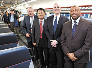 At a recent Denver Metro Chamber of Commerce transportation luncheon, President Kelly Brough revealed that one in six downtown workers is now commuting by bike in good weather. This percentage seems likely to grow. Because there are no longer any American manufacturers of rail passenger cars, RTD selected Hyundai Rotem of Korea to build their customized vehicles. Vice Chair and CEO Kuy-Hwan Han was on hand for the ribbon cutting and ebullient about his company’s relationship with RTD. “We at Hyundai enjoyed this opportunity to partner with RTD and Denver Transit Partners. We’ve built these vehicles customized to meet the unique transit needs here in Denver,” he said.
