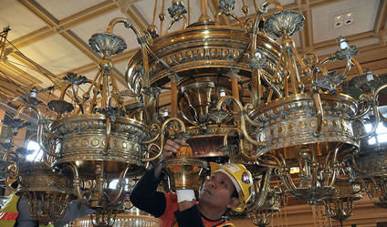 “You want to go historical, but you have to stay functional,” she said. Experts try to restore historic buildings and artifacts to their original condition but use modern technology where it’s appropriate, such as installing energy-efficient LED bulbs in the chandeliers.