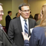 Former state Sen. Chris Romer, D-Denver, visits with Dean Singleton, founder and executive board chairman of MediaNews Group, at a fundraiser to support the governor’s mansion on Nov. 20. Romer spent some of years growing up in the mansion during the dozen years when his father, Roy Romer, was governor.