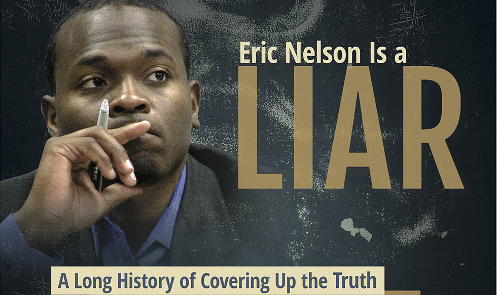A mailing attributed to the committee received by district voters on Wednesday highlighted passages from articles and an editorial about Nelson that appeared in The Statesman and The Aurora Sentinel. “Meet Eric Nelson,” a headline on the flier reads. “Dozens of arrests, including for domestic violence. Bigamy charges. Lying about degrees.”