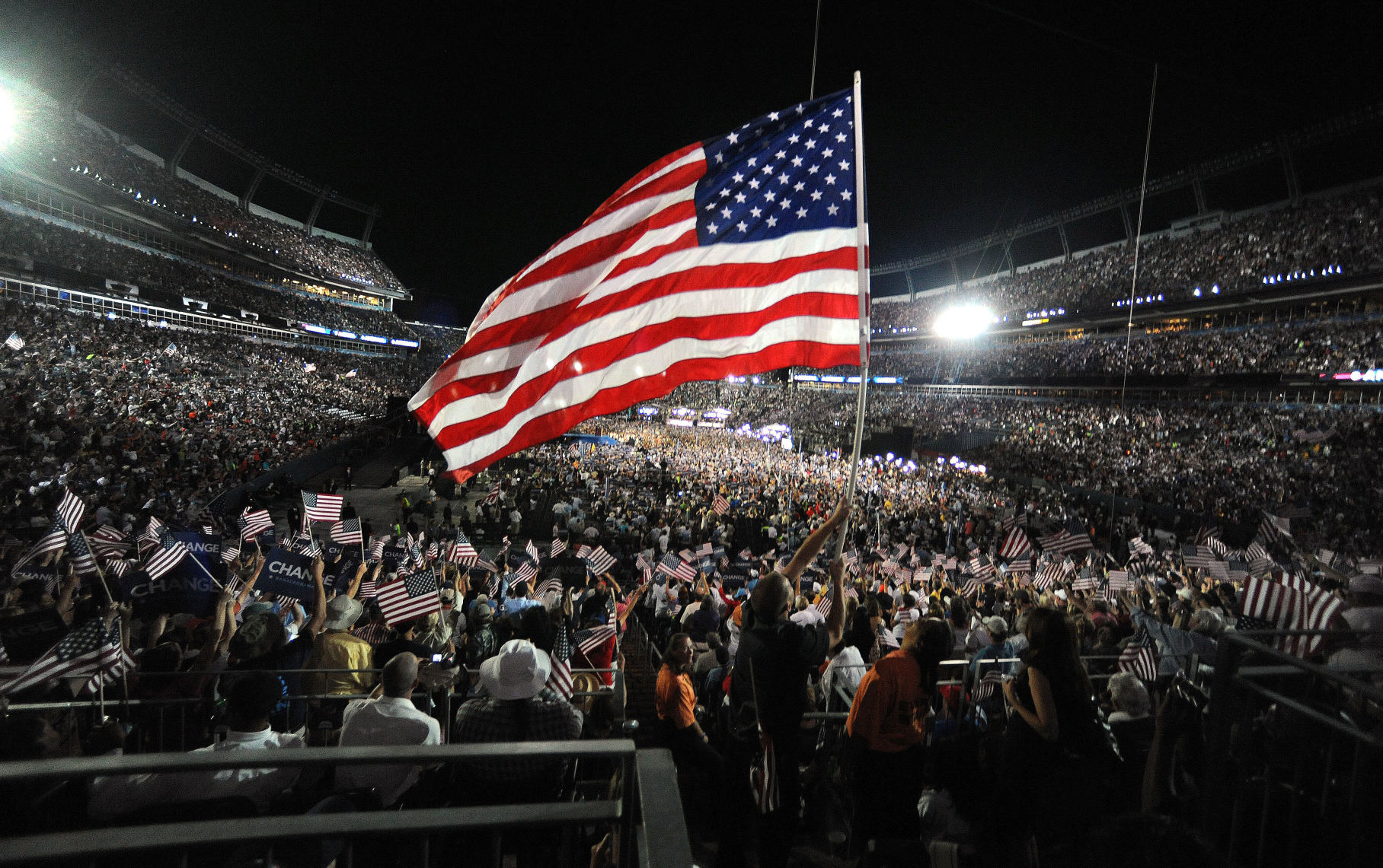 In 2008, most of the Democratic Party gathering was held at the Pepsi Center, but Obama – then an Illinois senator – moved his acceptance speech outdoors to the Denver Broncos stadium.