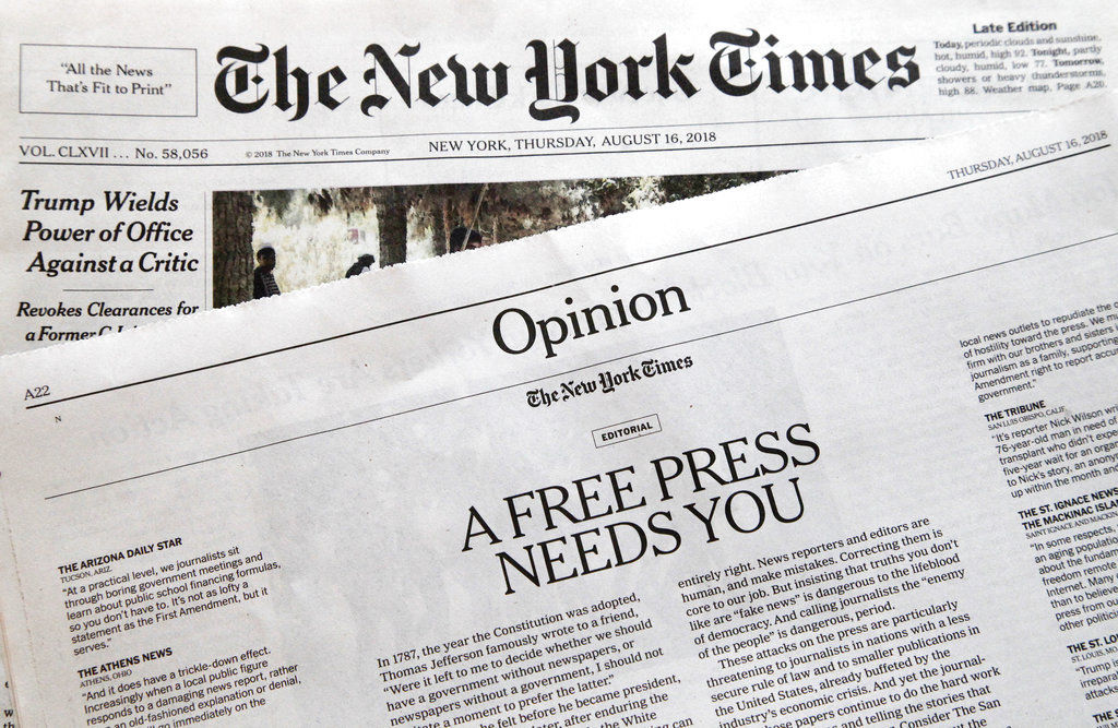 NEW YORK – Newspapers from Maine to Hawaii pushed back against President Donald Trump’s attacks on “fake news” with a coordinated series of editorials in defense of a free press on Thursday – and, not surprisingly, Trump didn’t take it silently.