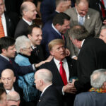 At points, Democrats seemed to outpace Republican members in enthusiasm. Sen. Kyrsten Sinema, D-Ariz, who wore hot pink rather than the white many of the women did to celebrate women’s suffrage, repeatedly stood to applaud Trump’s optimistic and vague promotions of “greatness” – the speech’s theme. Rep. Ted Lieu, D-Calif., a frequent critic of Trump on Twitter and TV, also applauded routinely, as did moderate Democratic Sen. Joe Manchin of West Virginia.