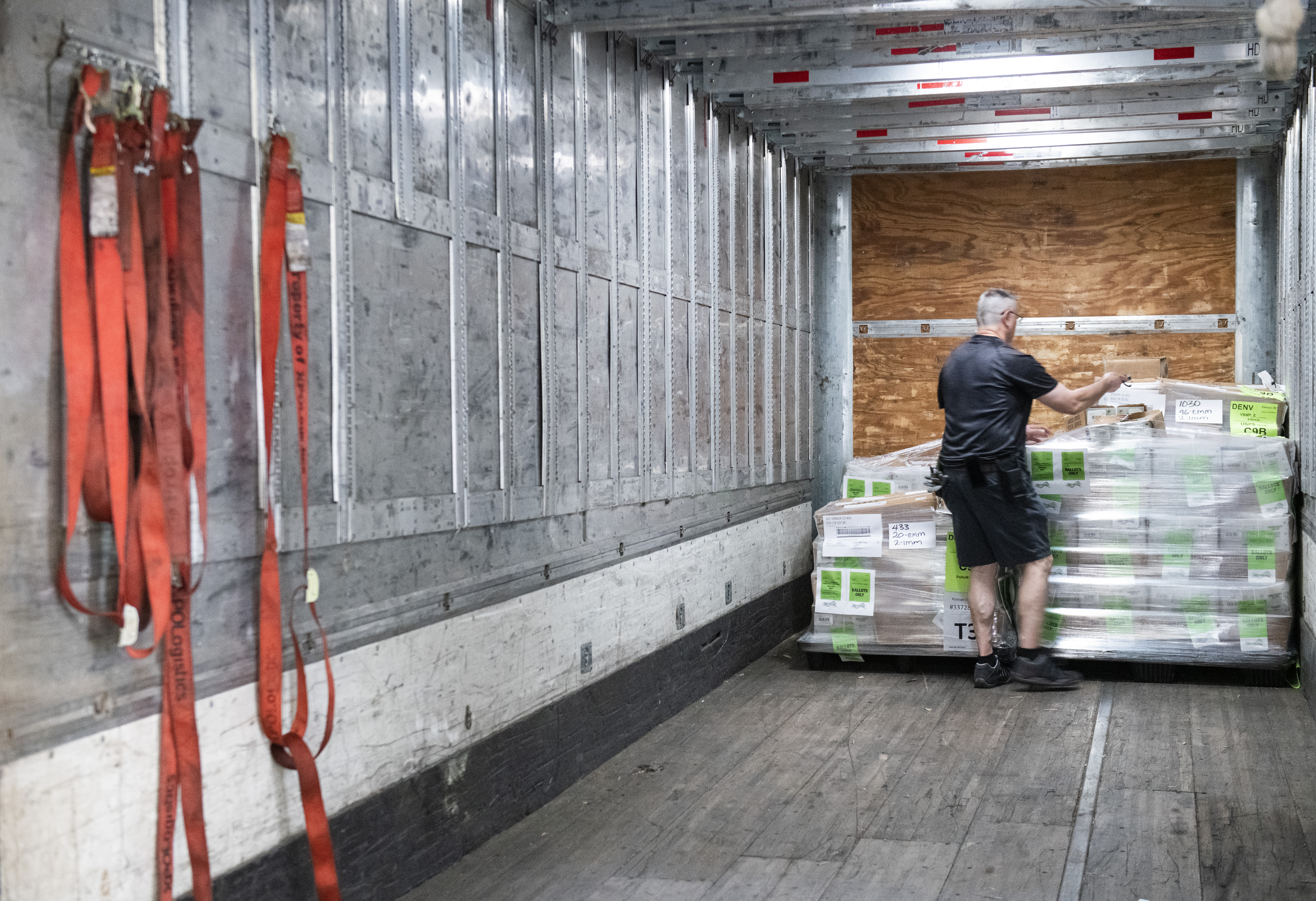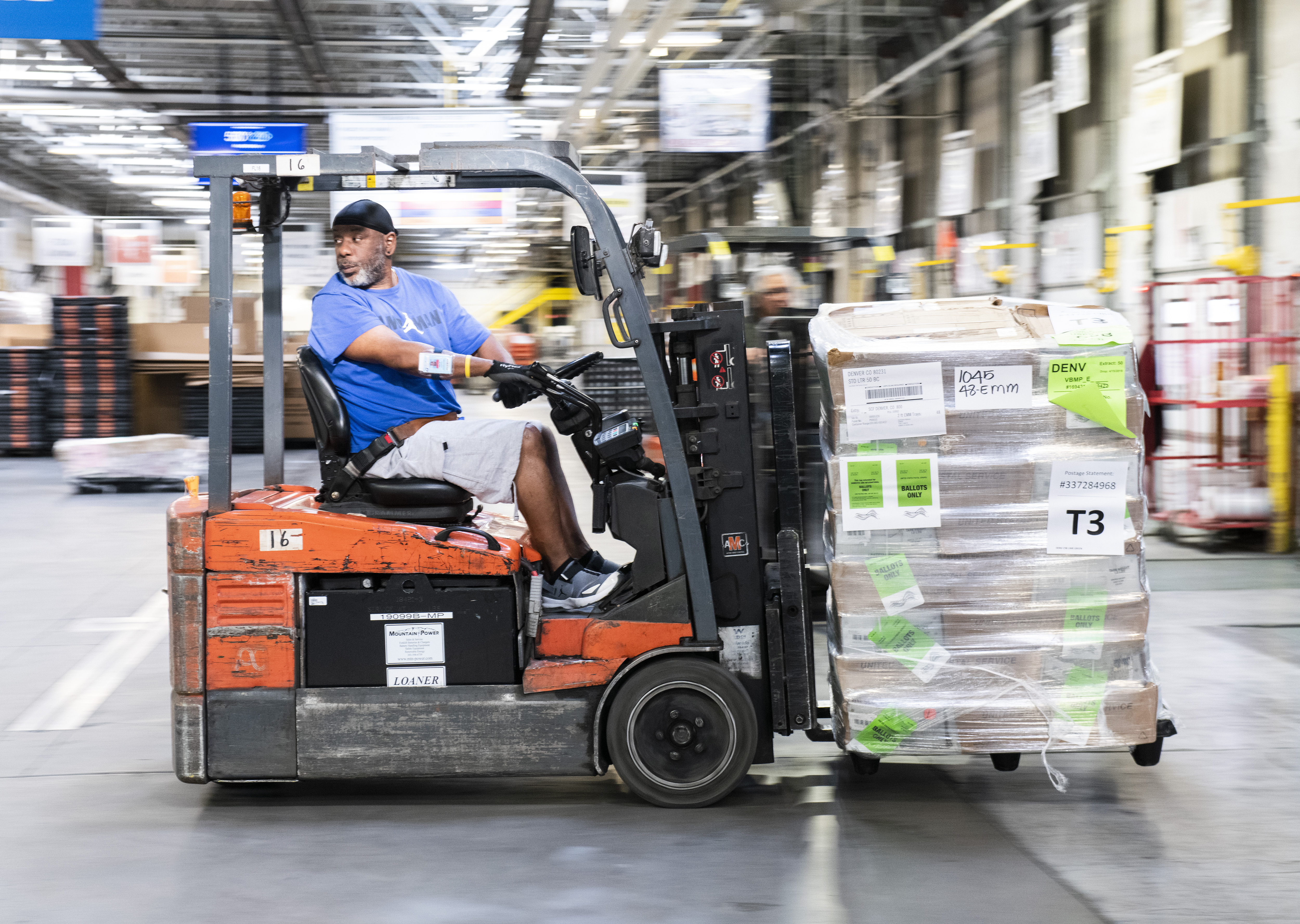 This is what democracy sounds like: the thrum of engines and the beeping of forklift trucks rolling backward as Denver’s 420,000 mail ballots arrived by the truckload on Monday morning.
