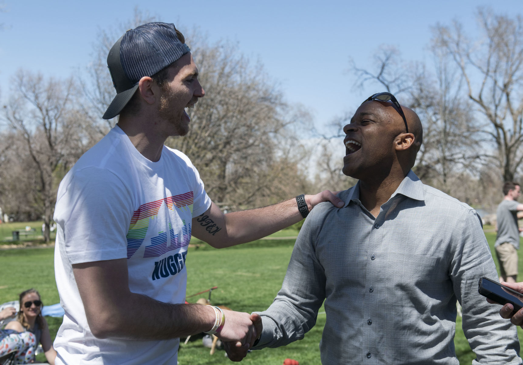 “I know it’s obviously campaign driven,” Goodman says. “But seeing him out in Wash Park. Everyone’s having a fun day today. It’s cool that he would stop by and play Cornhole with us.”