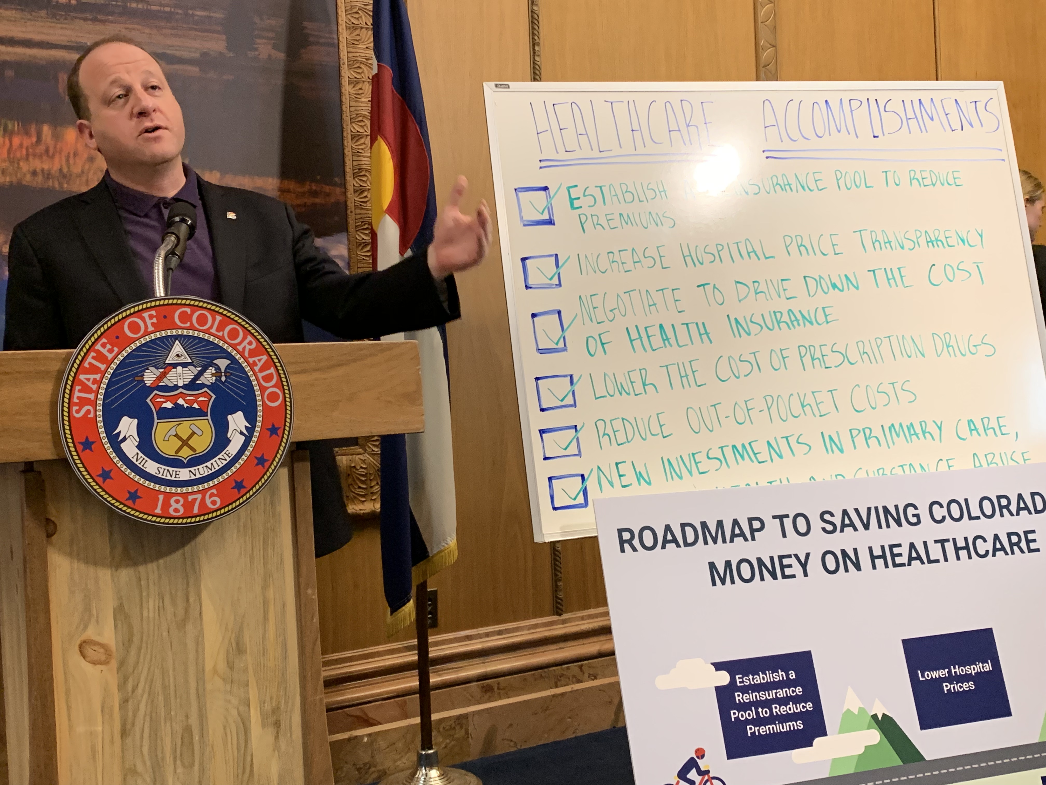 Polis pointed to passage of bills from his agenda on education and health care, state-paid full-day kindergarten, freezing college tuition at 2018-19 prices, hospital transparency, importation of prescription drugs from Canada and reducing costs on insulin.
