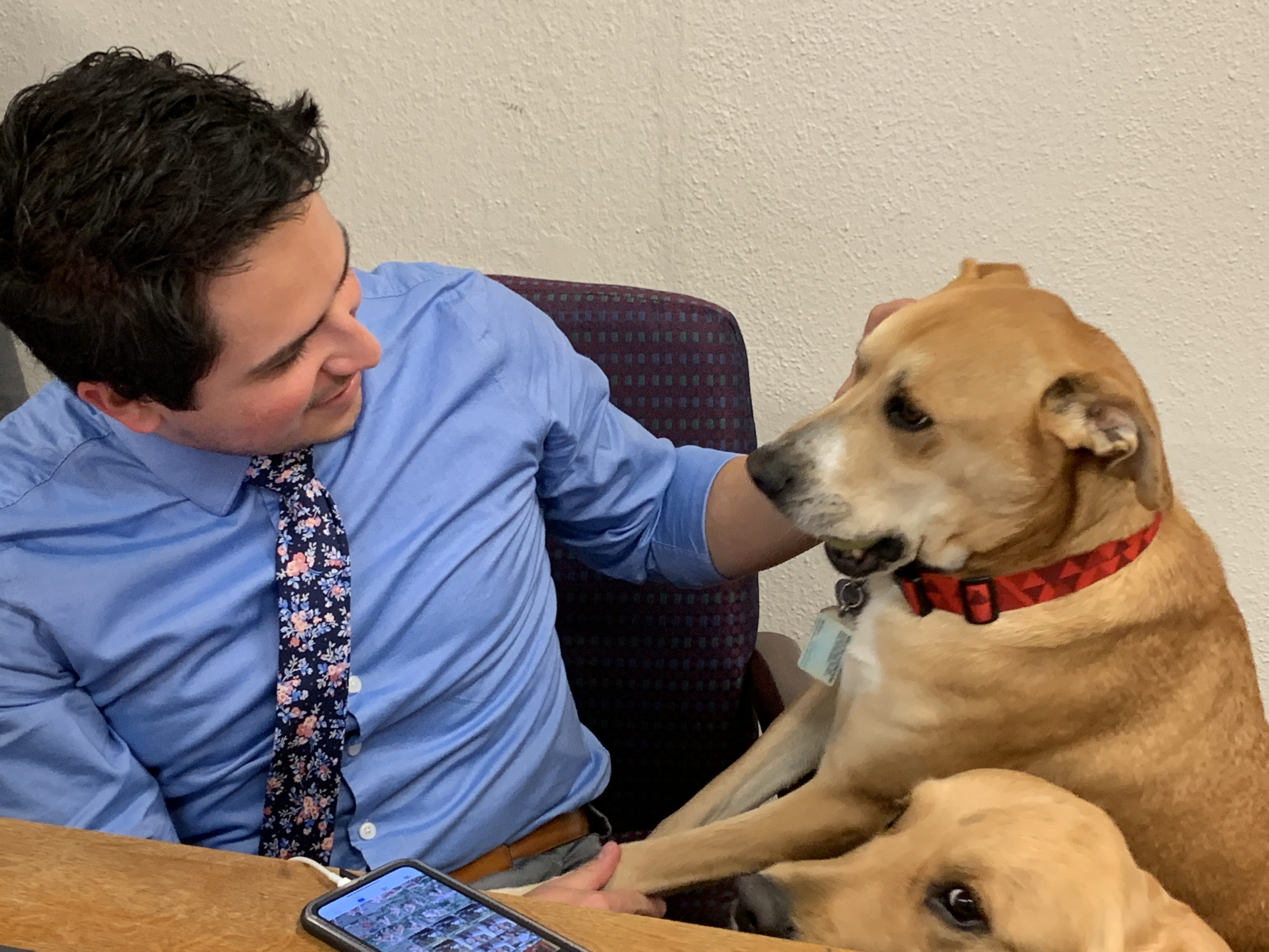 One more round of dogs: Visiting the Senate majority office this week were these two best buds, who belong to aide Michael Templeton. Sven is the golden retriever. He’s a little over three years old and has a talent for photo-bombing.