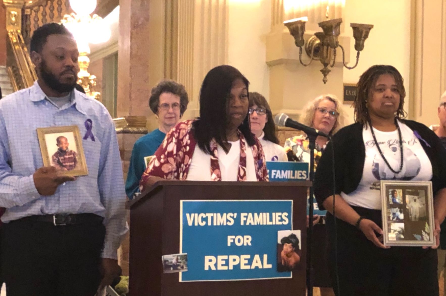 A collection of loved ones of crime victims supported the bill.