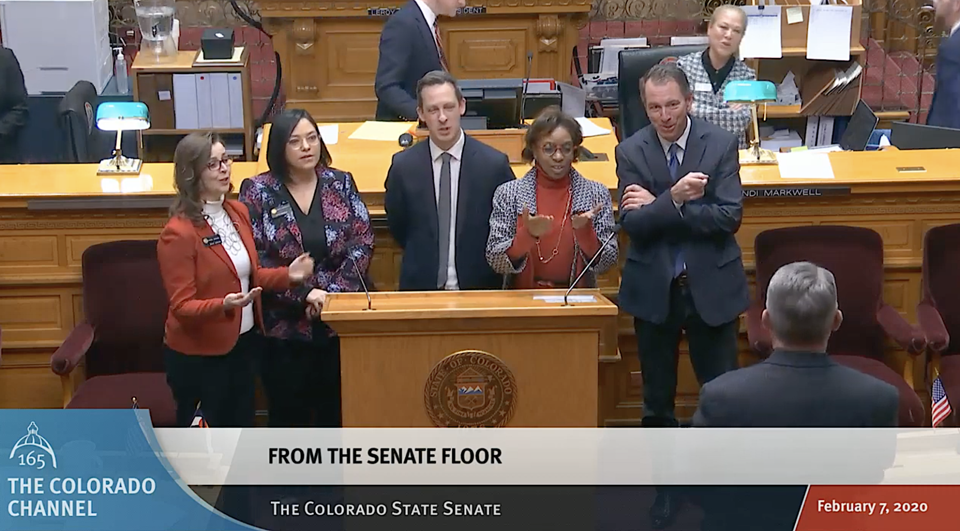 The rest of the choir included Democratic Sens. Rachel Zenzinger of Arvada, Julie Gonzales of Denver, Steve Fenberg of Boulder and Rhonda Fields of Aurora.