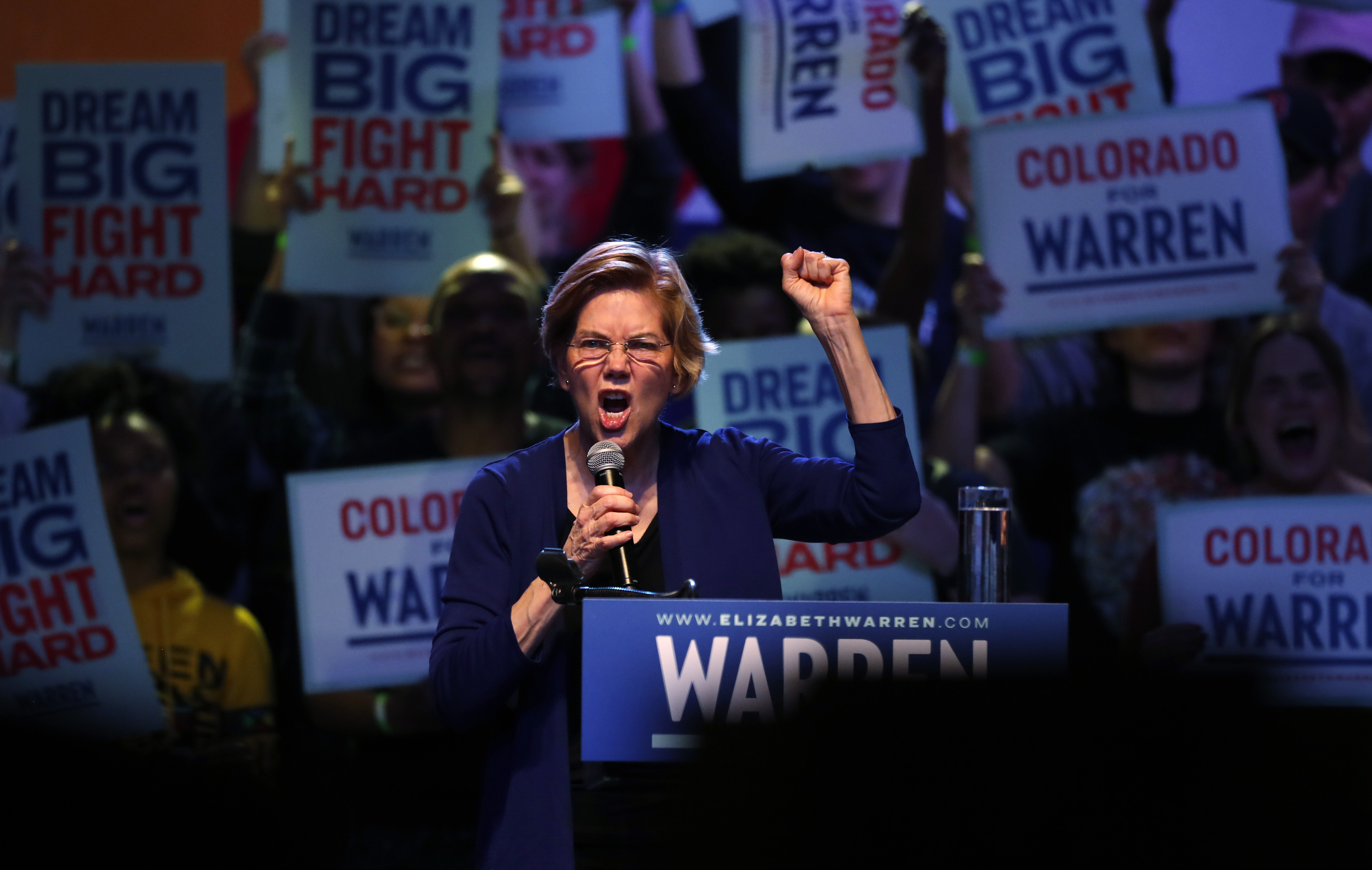 “It feels to me like Denver is ready for some big structural change,” Warren said as a crowd of 3,800 packed into the Fillmore Auditorium greeted the Massachusetts senator with deafening cheers.