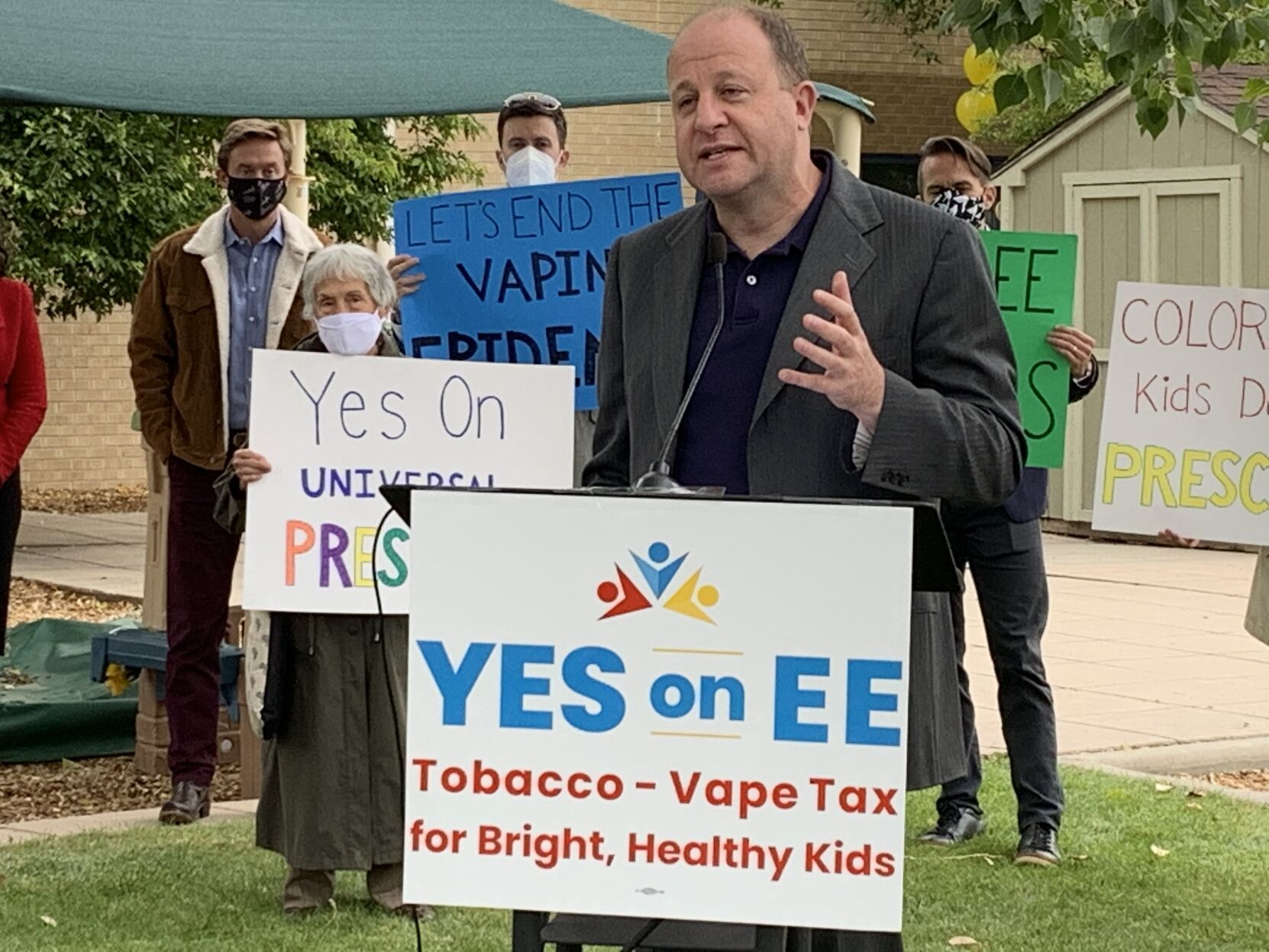 Proposition EE, which if approved in November would hike taxes on tobacco products and levy the first-ever tax on vaping, launched their campaign Thursday, bringing along their most prominent supporter: Gov. Jared Polis.
