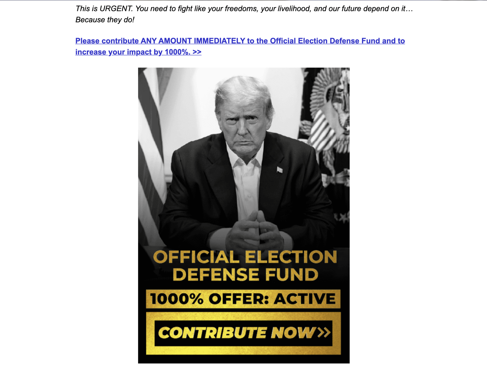The email, instead, included links to where I could donate, starting at the low, low price of $5. Every email, Republican or Democrat, includes the links, which is the whole point.