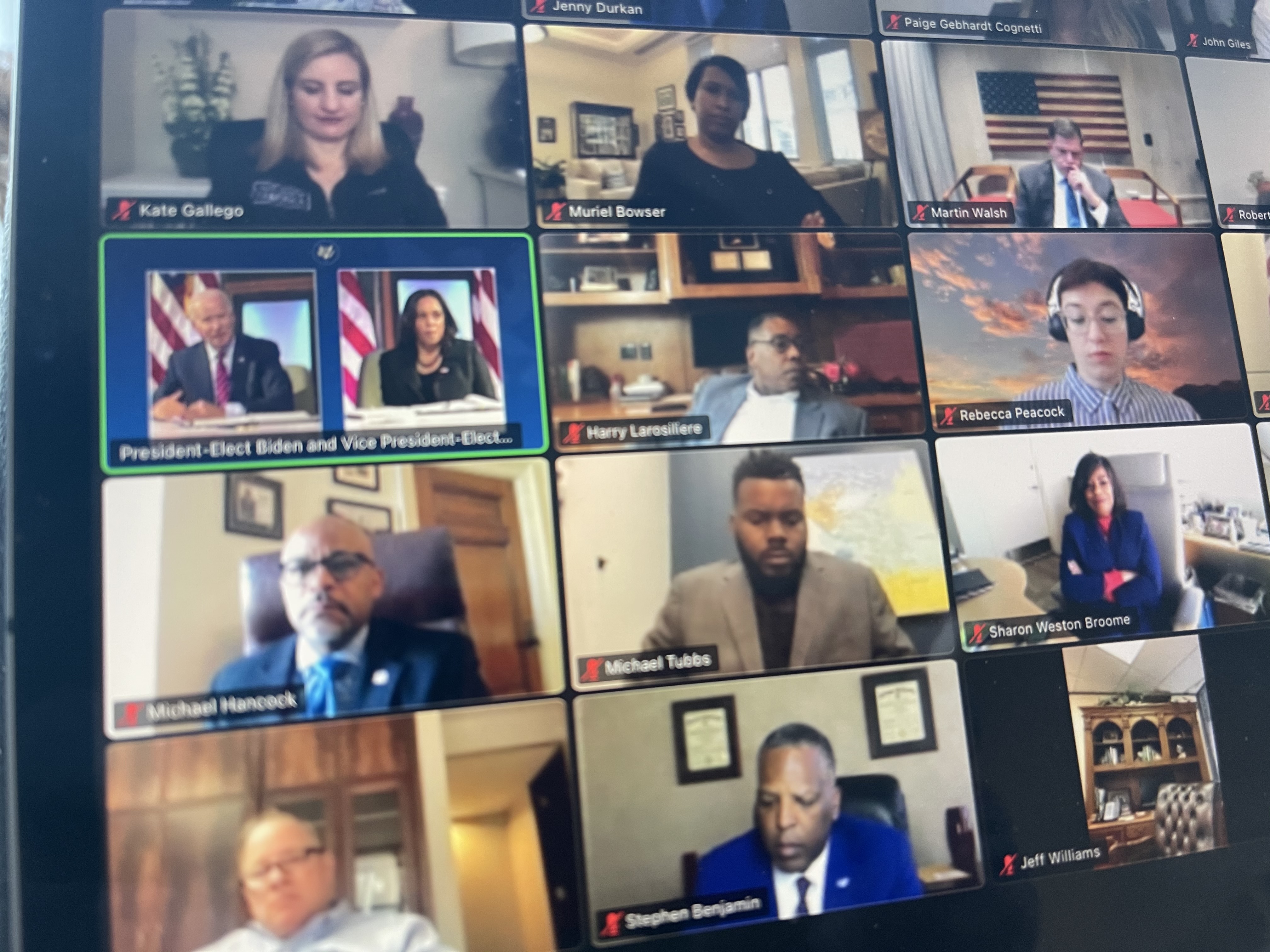 President-elect Joe Biden and Vice President-elect Kamala Harris met with the U.S. Conference of Mayors in a video call Monday including Denver Mayor Michael Hancock.