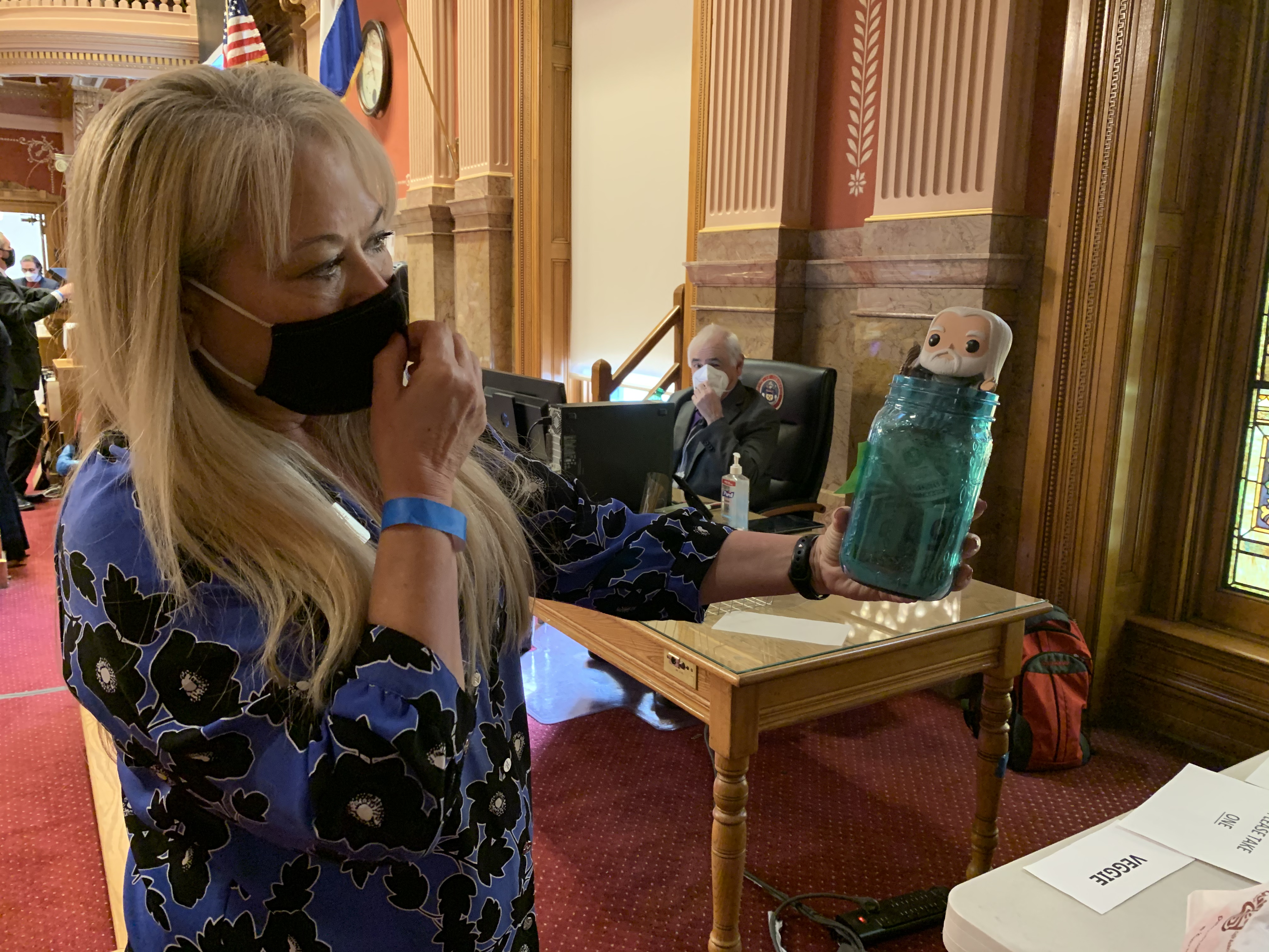 Turning to Senate Bill 1, which provides relief for arts and cultural organizations and small businesses, Speaker of the House KC Becker, D-Boulder, repeatedly tells the House to be quiet. From the rear of the chamber on the Republican side, there are shouts of “he won’t leave!”