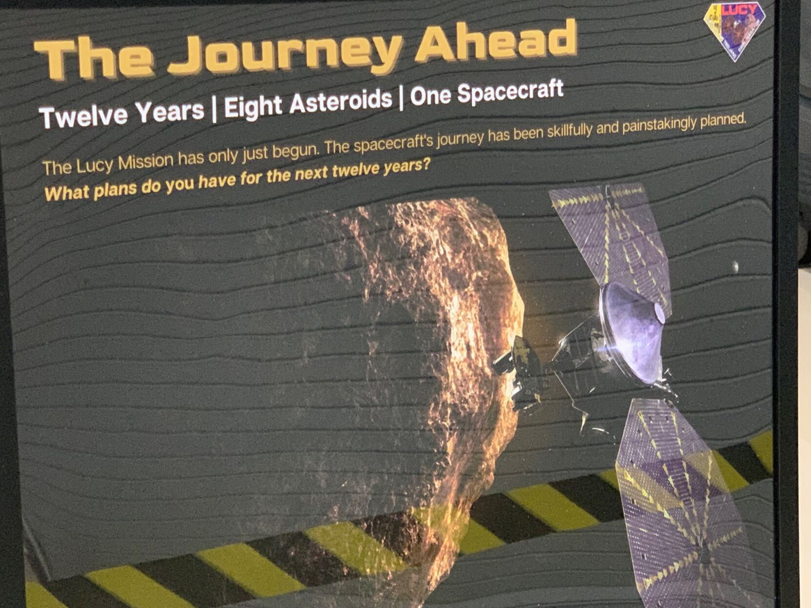 “It makes us feel connected with the rest of the world and the universe,” he said. “Lucy is going to stay in orbit around the sun for 1-2 million years. Think about that 3.2 million year old fossil and how much we’ve changed as a people since then … The plaque will leave a message of our history for maybe 10,000 years down the road when an astro-archaeologist picks up the spacecraft.”