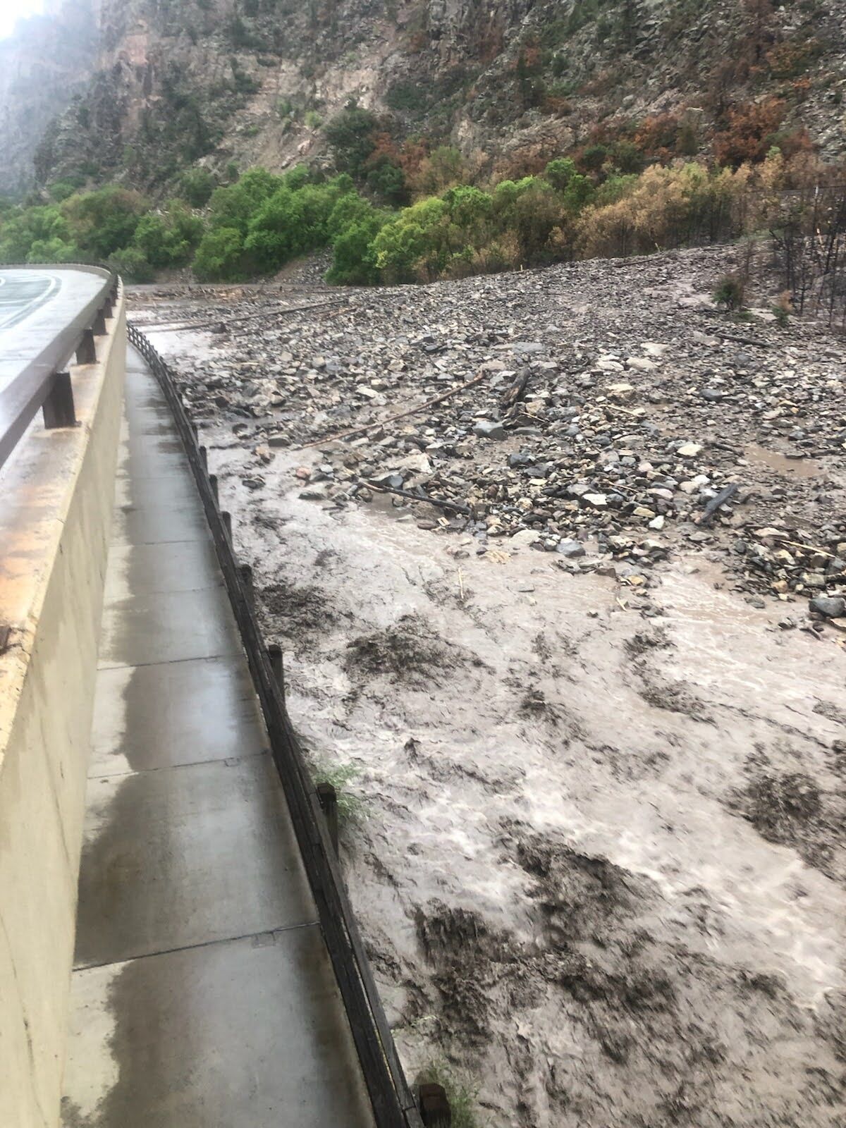 Flooding near the Grizzly Creek burn scar littered the road with debris around 5:30 p.m., forcing closures between Glenwood Springs, exit 116, and Dotsero, exit 133, and at West Rifle, exit 187, the department said.