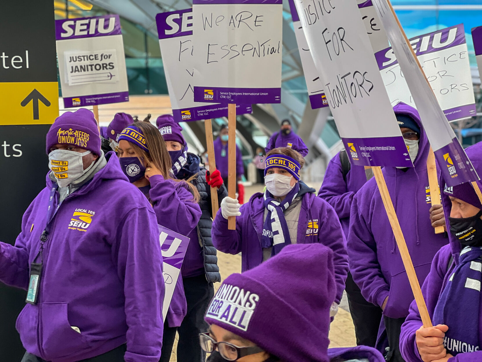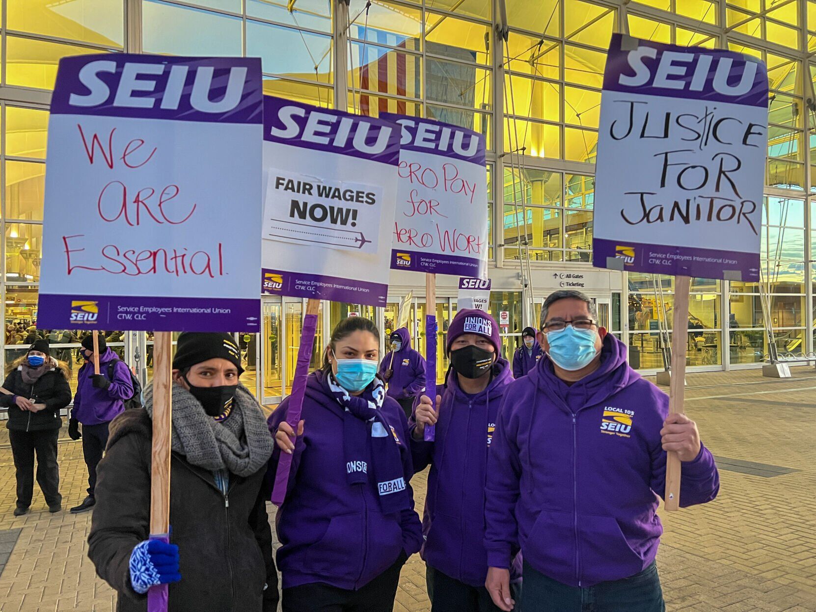 “We’re on strike for fair wages and workloads,” said DIA janitor Luis Gonzalez said in the announcement. “We keep this place running, we put ourselves at risk every day, and we deserve to be able to put food on the table for the holidays.”