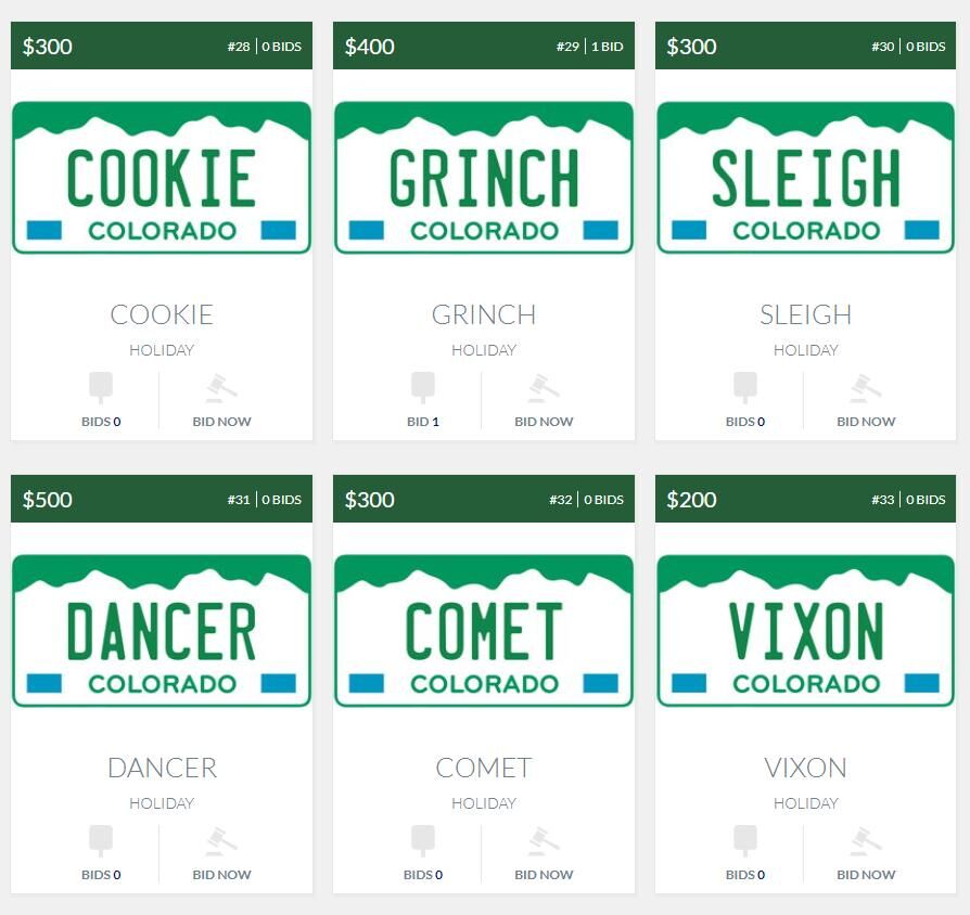 The Colorado Disability Funding Committee, which has hosted several auctions of specialty license plates in the last two years, has come up with a new group of special license plate configurations that are available through an online auction through this Friday, Nov. 26 at 8 p.m.
