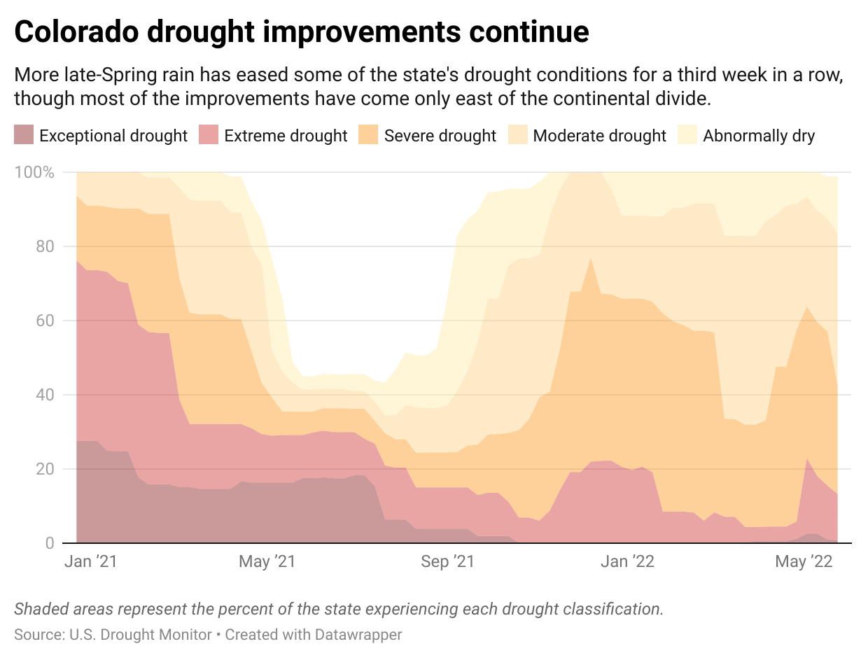 The biggest improvements have come in the eastern half of the state, while the Western Slope has yet to see the same reprieve.