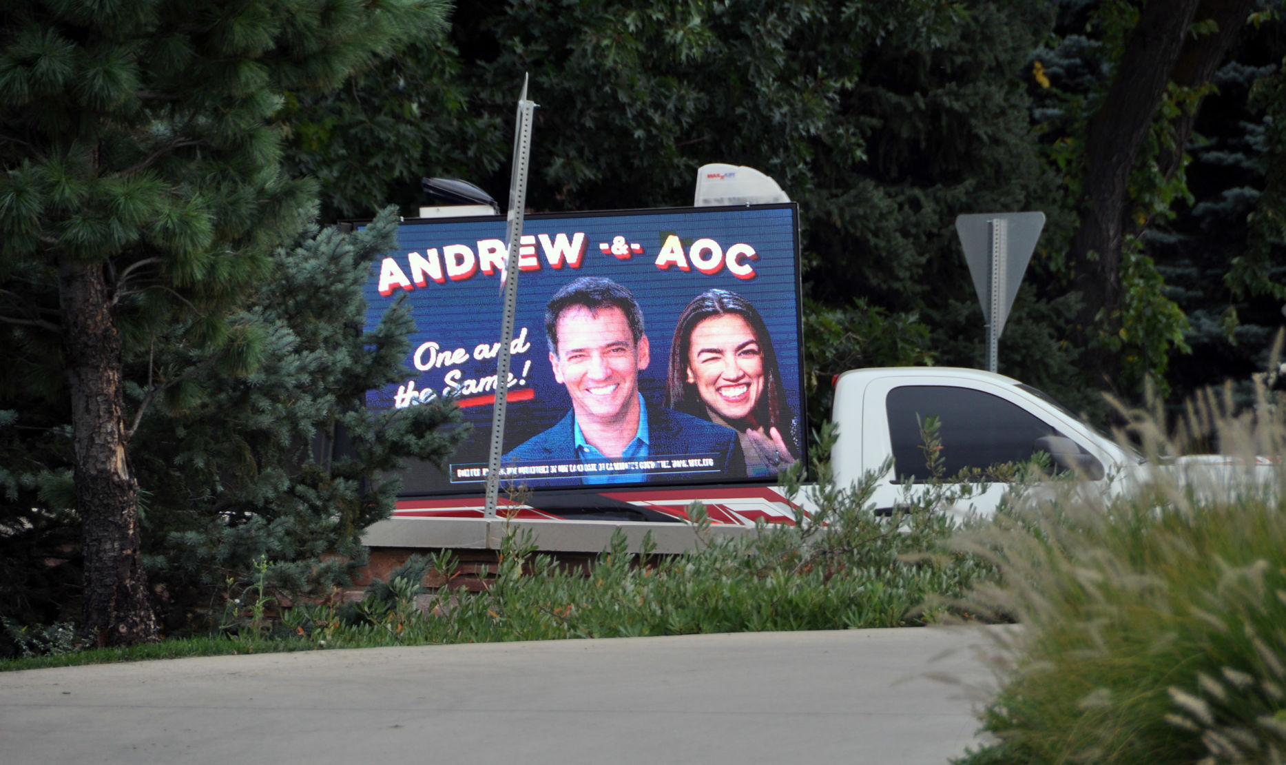 After Hickenlooper ended a brief presidential run and jumped into the crowded Senate race a few months later, the NRSC hired a high-tech mobile billboard to circle the venue where AOC was scheduled to headline the Boulder Democrats’ annual dinner. The Republican’s illuminated, three-sided sign and coordinated, geographically targeted Facebook ads drew attention to similarities between AOC and Andrew Romanoff, one of the more outspoken liberals in the Senate field, declaring “Romanoff & AOC One and the Same!” and “”AOC & Andrew’s Agenda – Medicare for all, Green New Deal, stricter gun control.”