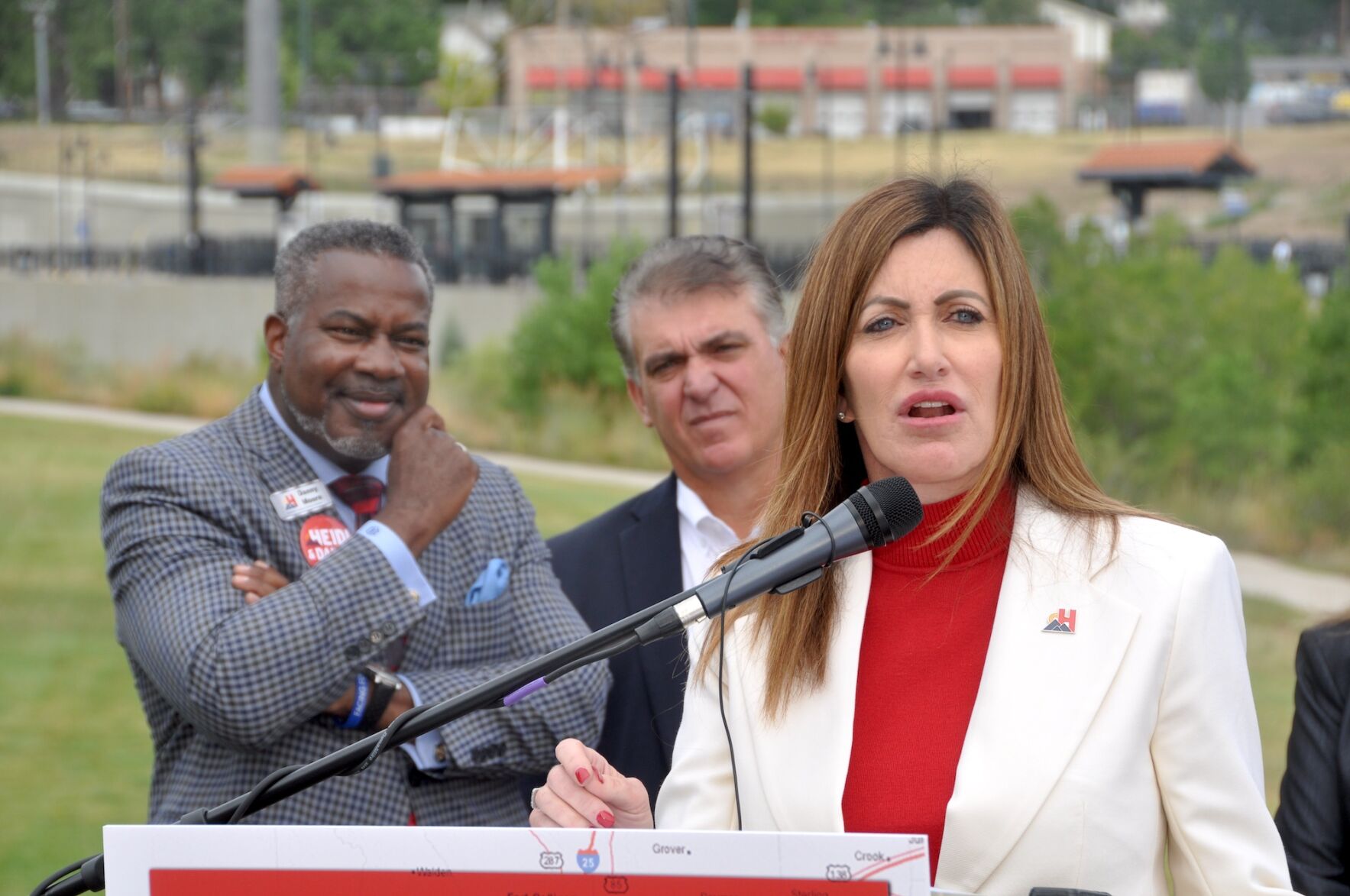 “Right now, inside that building, they’re attacking that freedom,” Ganahl said, waving toward CDOT headquarters, where commission members were meeting. “All this leads us to a need for a different plan, a common sense solution that reduces carbon emissions by alleviating traffic and helping Coloradans travel our state safety and on time.”