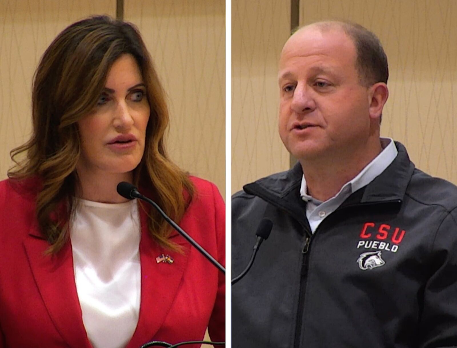 Democratic Gov. Jared Polis and his Republican challenger, Heidi Ganahl, painted contrasting pictures of Colorado during their first debate Wednesday night in Pueblo.