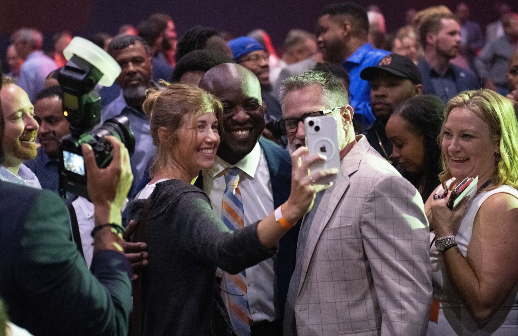 Highlights from Yemi Mobolade’s watch party on Tuesday, May 16, 2023 at the COS City Hub in Colorado Springs. According to preliminary, unofficial results, Mobolade defeated Wayne Williams by about 15 percentage points, becoming the city’s first elected Black mayor and the first Colorado Springs mayor who isn’t a registered Republican in the more than four decades since the city began electing mayors directly in 1979. (Video by Skyler Ballard/ The Gazette)