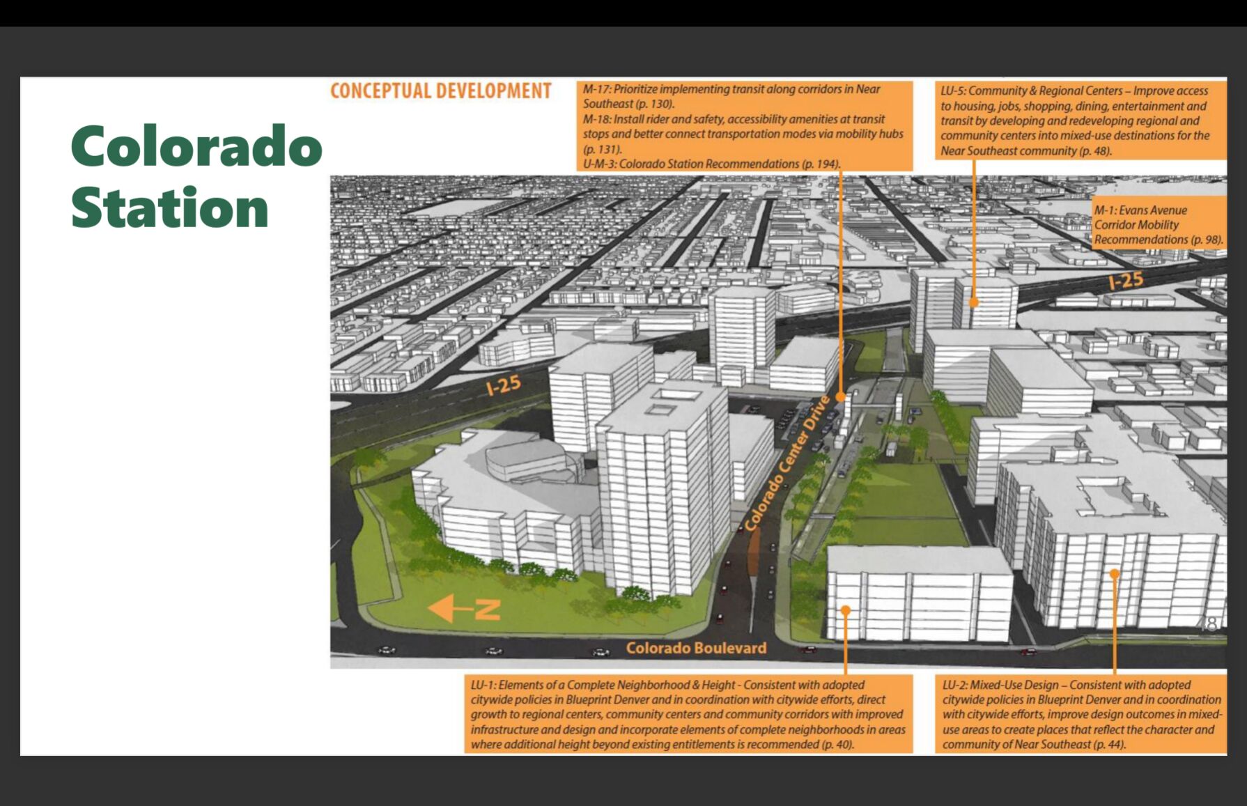 Others were excited about what the plan could bring to the area. One resident, Falene Young, lives near the Colorado Station RTD Park and Ride at the intersection of Evans Avenue and Colorado Boulevard.