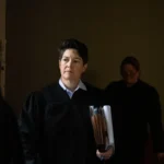 Dressed in a white sweater with an American flag on the front and a matching white cap with “Make America Great Again” written in gold lettering, Mioes noted how Kirk had been a role model for her, and that his words helped convince her to abandon the Democratic ideas she was raised with in favor of those of the Christian faith.