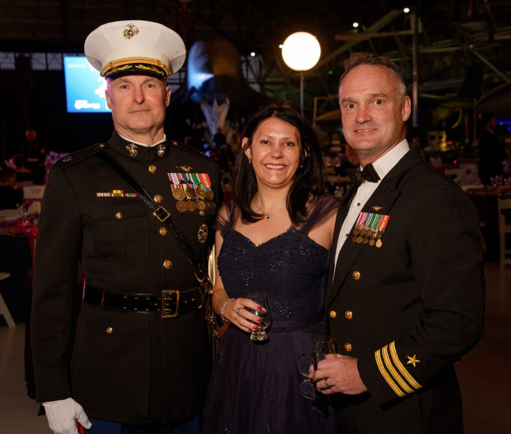 Photo StevePeterson.photoLt. Col. Bruce Greene, USMC (Ret.), Tonya Ruhsenberger, and Commander Michael Ruhsenberger, USN (Ret.). The United States Marine Corps 250th Birthday Ball Celebration at the Wings Over the Rockies Air & Space Museum in Denver, Colorado, on Sunday, Nov. 9, 2025.