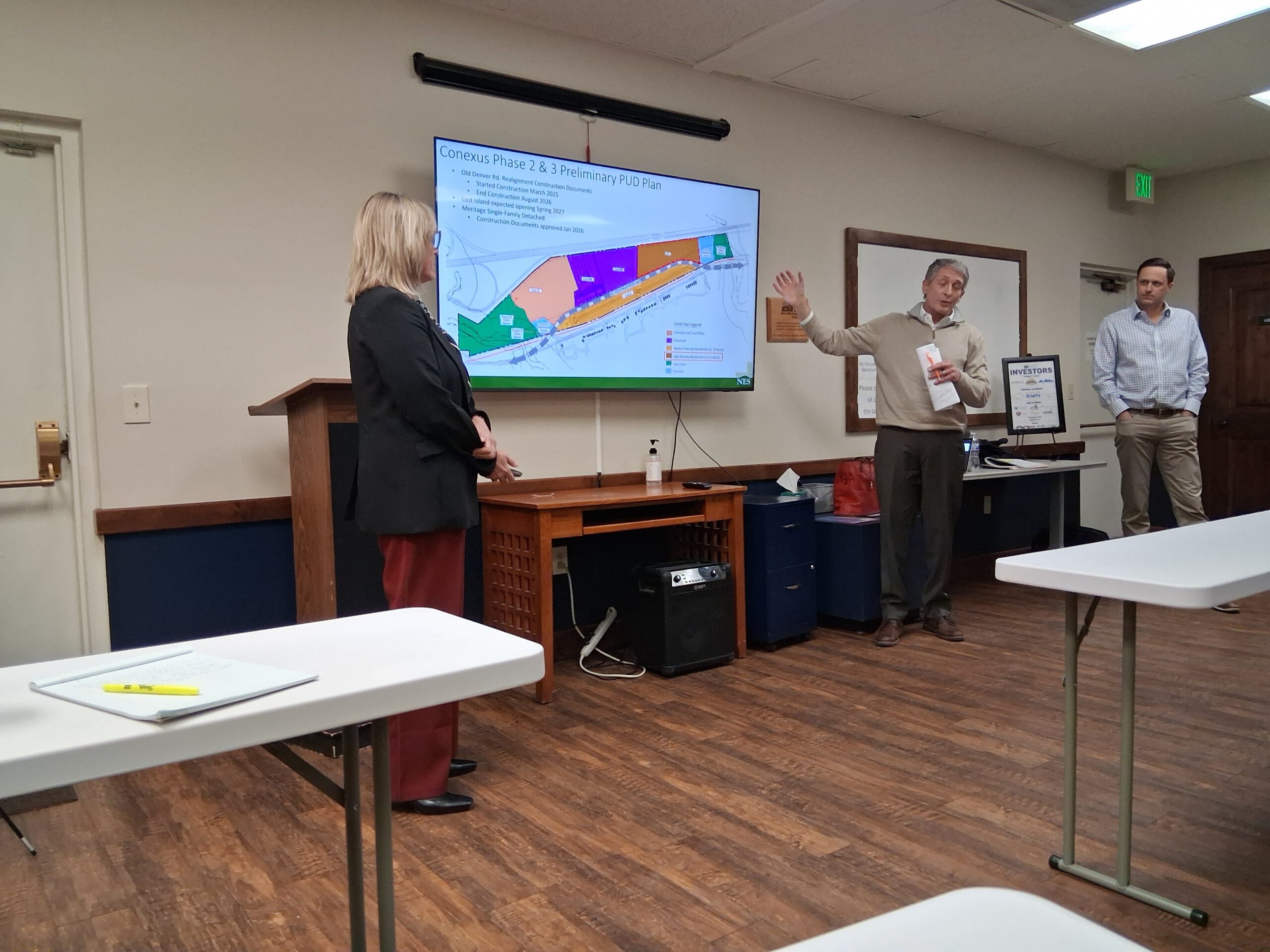The plan, called Conexus Phase 2 and 3, was presented to community members at a meeting on Tuesday night. The crowd was less than 20, a more tepid reception than previously presented plans for the land to be used primarily for industrial purposes. Those plans were withdrawn several years ago after significant public opposition.