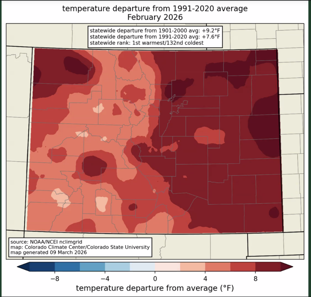 Temperatures in February were the highest on record at 7.6° F above the 1991 to 2020 normal, and 9.2° F above the 20th century average, he said.