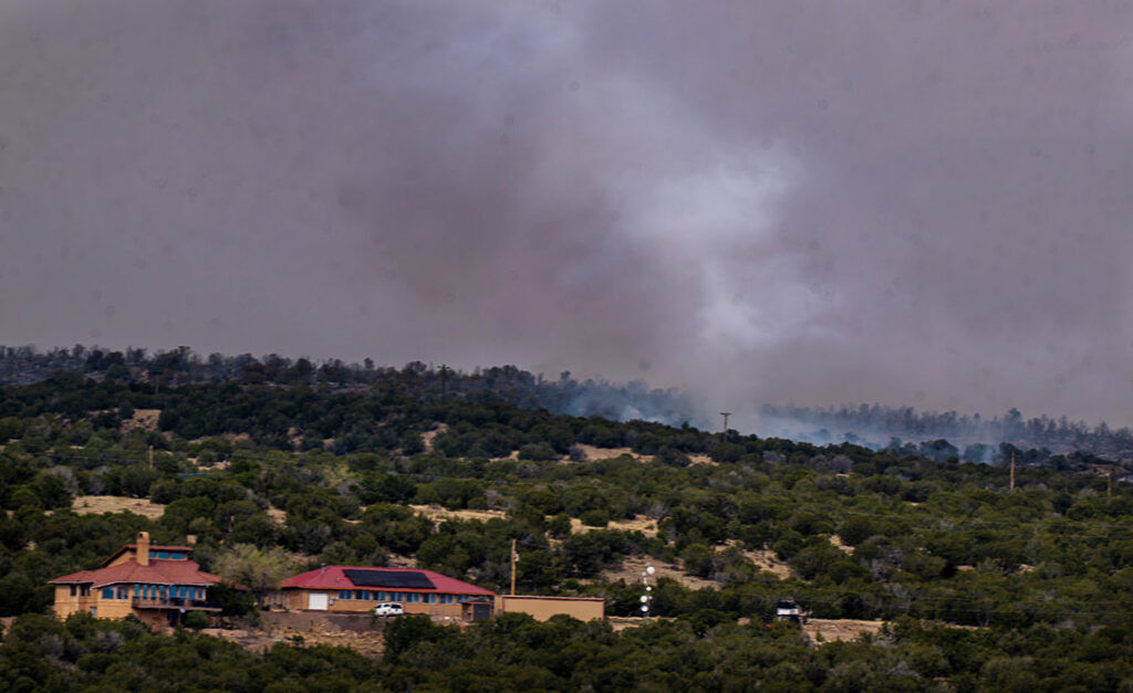 “We don’t want anything to happen to our beautiful Penrose,” May said with smoke from the 24 fire rising behind her. “The world has so much chaos going on right now, and this is the only little haven we have with our kids and our family to keep us safe and sane.”