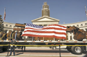 Sixteen pieces of World Trade Center steel, weighing more than 200,000 pounds, began arriving in Denver on Monday. The large truck used to transport the symbolic steel from New York received a local police escort as state and city officials gathered at Civic Center Park to officially announce plans for a memorial concert there on Sept. 11. Featuring the Beach Boys, the Colorado Symphony and the Colorado Children’s Chorale, the memorial tribute is partially sponsored by The CELL.