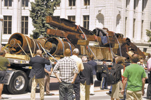 The World Trade Center artifacts displayed for the public on Monday included two rusty turbines from the elevators of the crumbled World Trade Center towers in New York City, and pieces of steel from both the first and second towers of the terror-targeted buildings. Draped in an oversize American flag, the artifacts made their way across Denver, first to Civic Center Park and then for a second event at Sloan’s Lake.