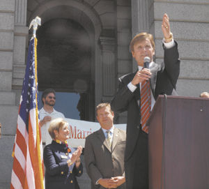 Sen. Ted Harvey, R-Highlands Ranch, called on supporters to rally for the defense of marriage cause. He attempted to spark passion for the issue that will continue through the election season.