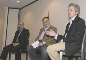 A heavily advertised town hall meeting at the J.W. Marriott in Cherry Creek drew a crowd in excess of 200 on a sunny Sunday afternoon. Touted as an issues discussion for a “Pro-Israel Community at the Crossroads — Critical Issues and Choices Facing the U.S. and Israel in 2012,” the event proved an unabashed organizing event for Romney’s Jewish supporters. If you didn’t get the hint from the ‘OBAMA…OY VEY!’ buttons at the registration table, it didn’t take long to figure out once the program got underway. Local powerbroker Larry Mizel of Richmond Homes welcomed the panelists: Norm Coleman, former U. S. Senator from Minnesota as well as former Democrat who lost his Senate seat in 2008 to Al Franken in the nation’s closest race, Ari Fleischer, former press secretary to President George W. Bush and now a CNN commentator, as well as moderator Matt Brooks, executive director of the national Republican Jewish Coalition (RJC).