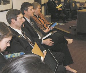 Eighteen senators paraded around the state capitol on Tuesday, April 16, either barefoot or down to their socks, as a show of support for One Day Without Shoes. That included walking around on the Senate floor during the morning session and going shoeless during committee hearings in the afternoon. The Senate Finance Committee, a group of five, had a majority of its members in their bare feet during a Tuesday committee meeting. The “shoe of support” for One Day Without Shoes was a pretty dramatic departure in protocol for the state Senate, the more formal body of the two chambers at the capitol.