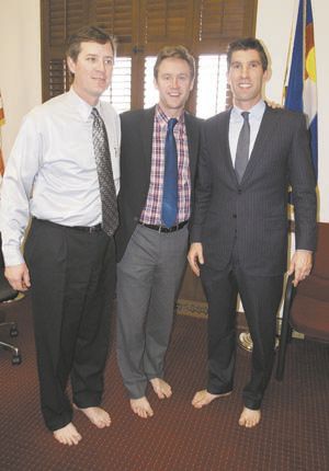 Several senators who participated in One Day Without Shoes faced a stronger test than they might have expected, vowing to go the entire day barefoot regardless of the weather. For some, that meant going outside when the capitol’s fire alarms went off during the noon hour, and the entire building was evacuated for 25 minutes on a day after the city got six inches of snow and the temperature was in the 30s. Sens. Jesse Ulibarri, D-Commerce City, and Michael Johnston, D-Denver both pledged their bare feet for the entire day to the effort, despite the weather that caused a scheduled noon outdoor press conference to fizzle.