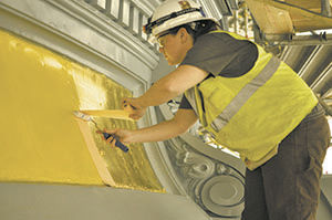 Since erection of the scaffolding began in fall 2010, crews have been working their way toward applying brand new gold leaf over the copper-clad dome. Contractors are applying approximately 140,000, 3 1?8″ x 3 1?8″ gold leaves on top of copper that covers the dome.