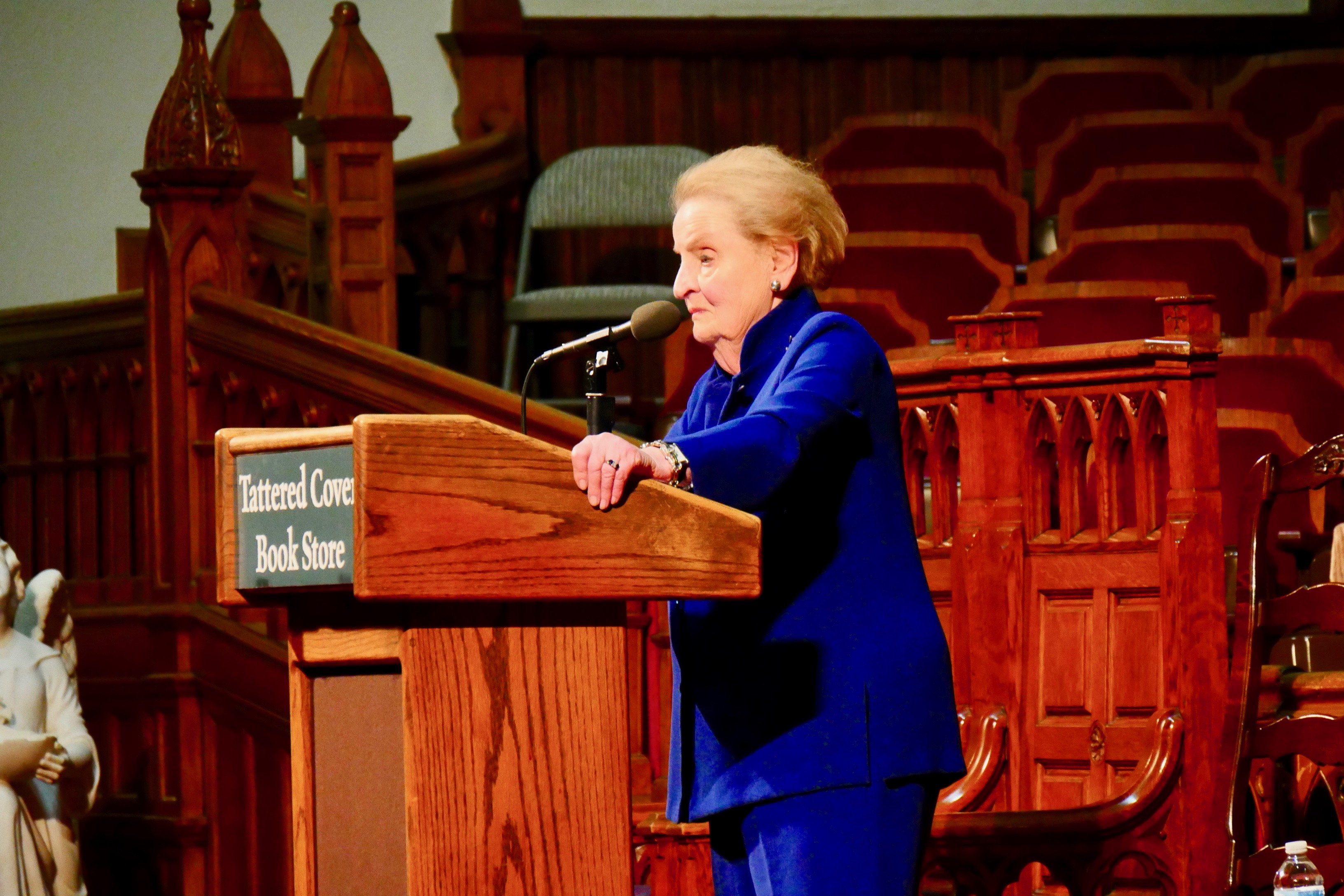 Women, men and some children packed Denver’s oldest church Wednesday evening to hear former U.S. Secretary of State Madeleine Albright talk about her her new book, “Fascism: A Warning,” and her concerns about President Donald Trump.