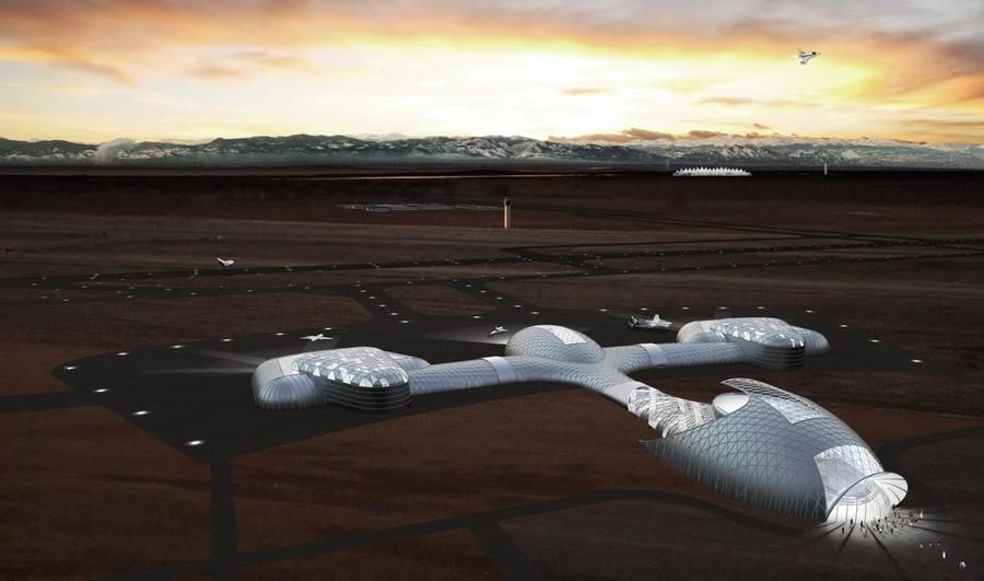 Such a building would certainly stand out from the gravel roads, cattle ranching, and oil and gas wells that surround the spaceport.