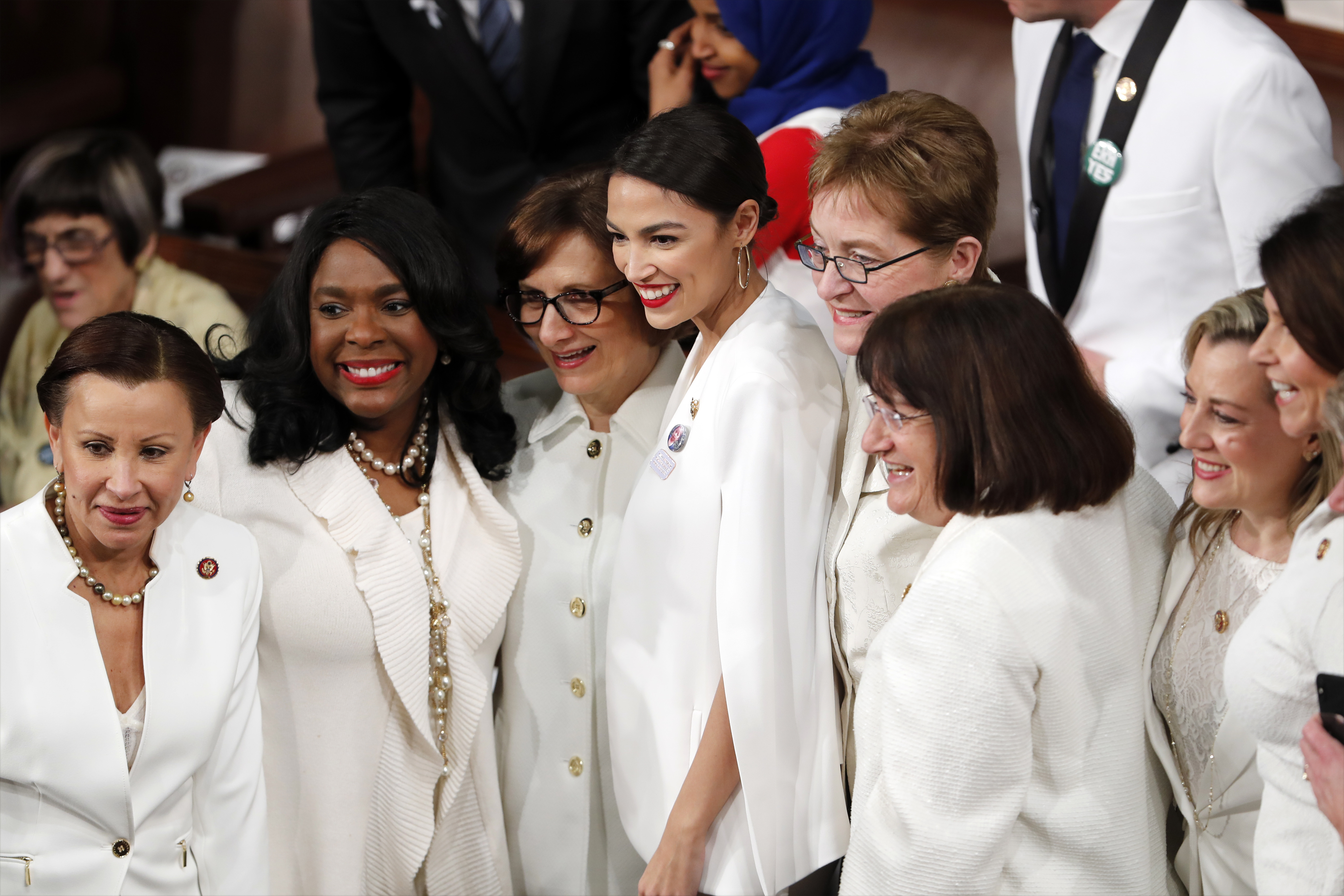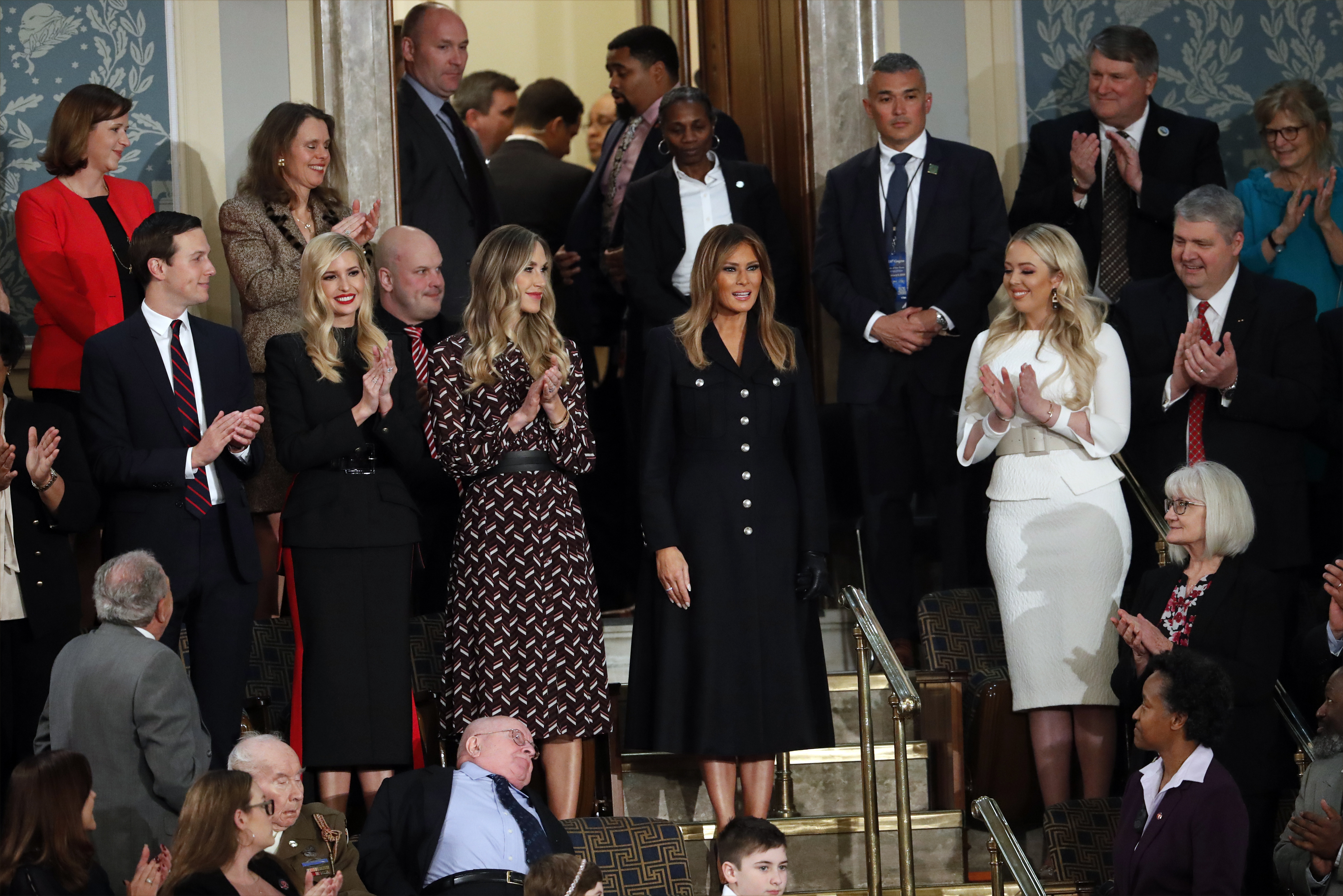 The diverse Democratic caucus, which includes a bevy of women, sat silently for much of Trump’s speech. But they leapt to their feet when he noted there are “more women in the workforce than ever before.”
