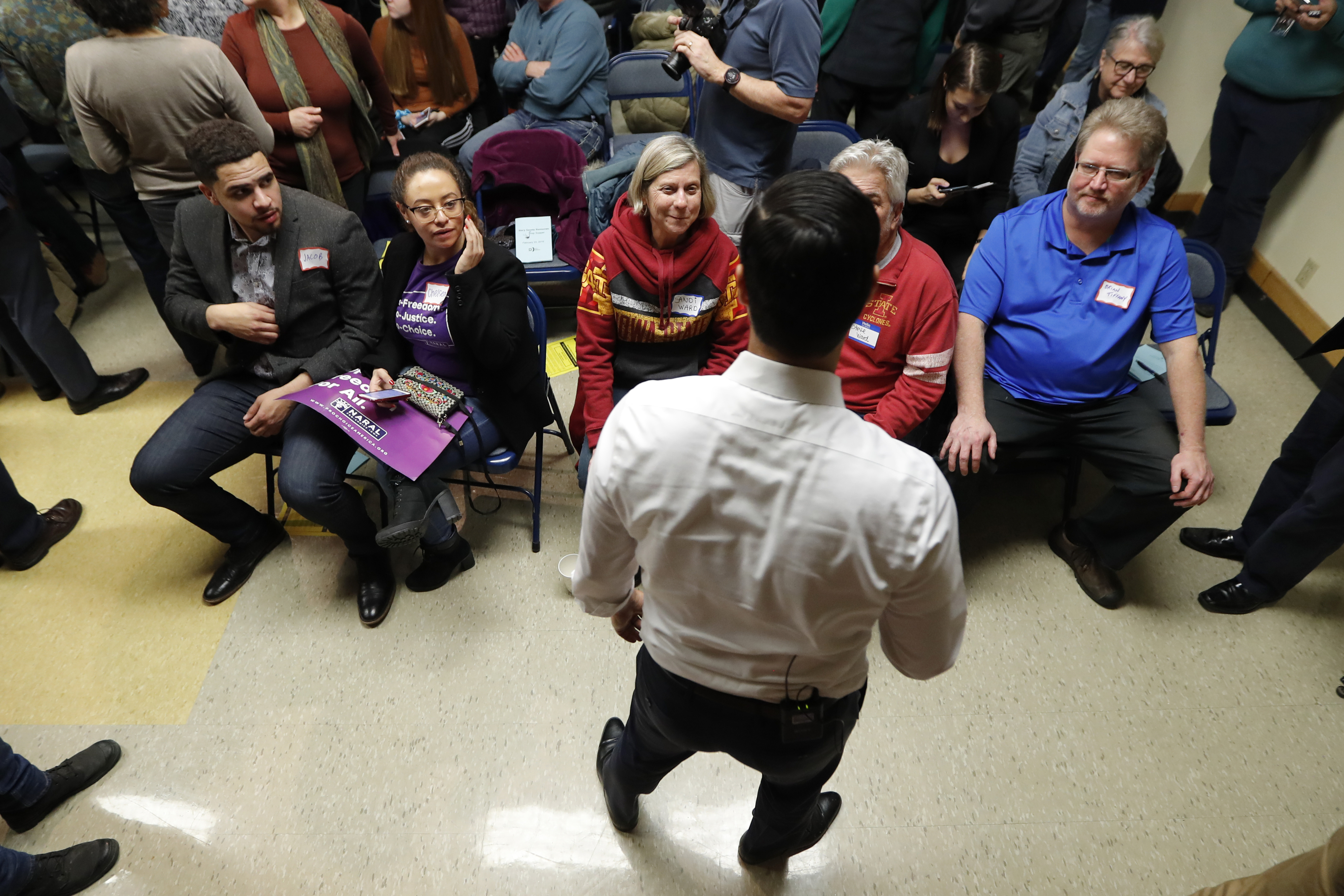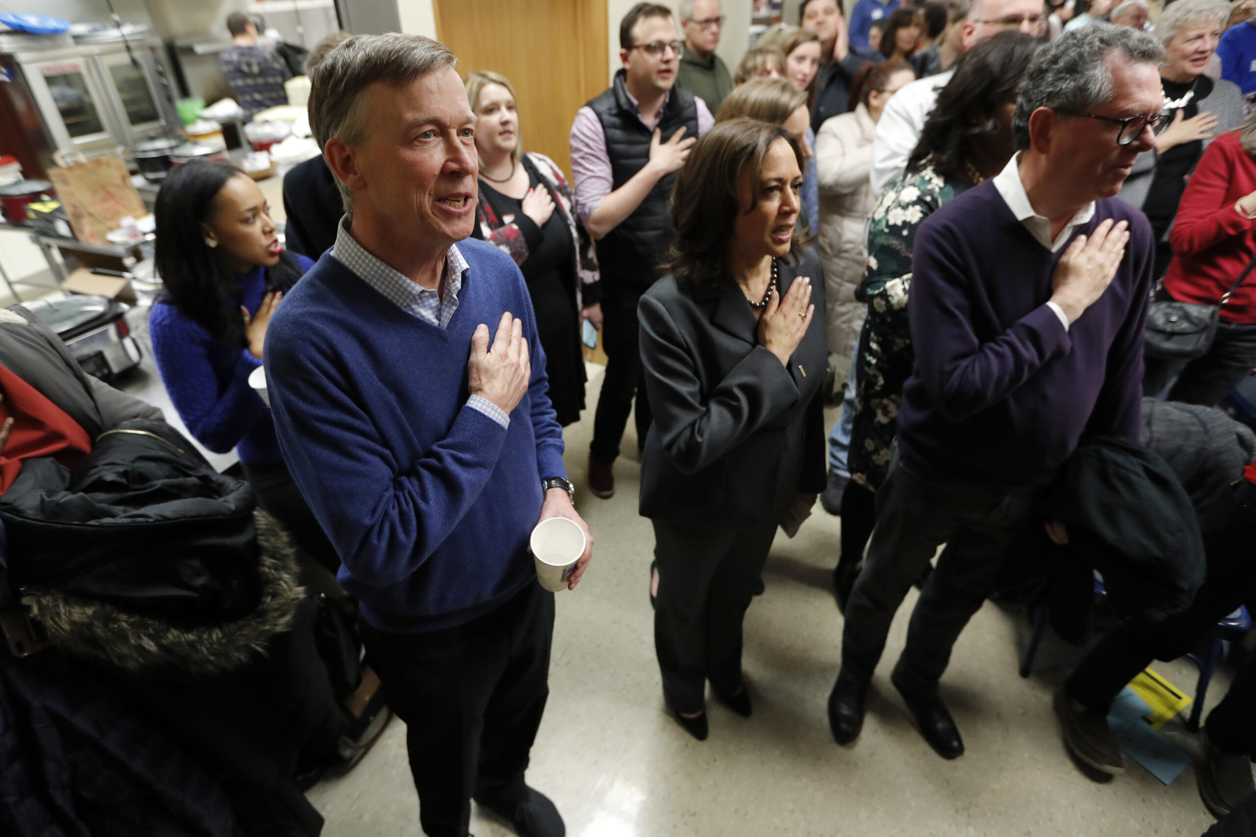Former Colorado Gov. John Hickenlooper, center, poses for a photo with a local resident at the Story County Democrats’ annual soup supper fundraiser, Saturday, Feb. 23, 2019, in Ames, Iowa. (AP Photo/Charlie Neibergall)Charlie NeibergallFormer Colorado Gov. John Hickenlooper, left, stands with Democratic presidential candidate Sen. Kamala Harris, right, during the Pledge of Allegiance at the Story County Democrats’ annual soup supper fundraiser, Saturday, Feb. 23, 2019, in Ames, Iowa. (AP Photo/Charlie Neibergall)Charlie NeibergallFormer Colorado Gov. John Hickenlooper, left, waits to speak at the Story County Democrats’ annual soup supper fundraiser, Saturday, Feb. 23, 2019, in Ames, Iowa. (AP Photo/Charlie Neibergall)Charlie NeibergallDemocratic presidential candidate Sen. Kamala Harris talks with former Colorado Gov. John Hickenlooper, right, at the Story County Democrats’ annual soup supper fundraiser, Saturday, Feb. 23, 2019, in Ames, Iowa. (AP Photo/Charlie Neibergall)Charlie NeibergallFormer Colorado Gov. John Hickenlooper waits to speak at the Story County Democrats’ annual soup supper fundraiser, Saturday, Feb. 23, 2019, in Ames, Iowa. (AP Photo/Charlie Neibergall)Charlie NeibergallFormer Colorado Gov. John Hickenlooper, right, talks with former Housing and Urban Development Secretary and Democratic presidential candidate Julian Castro at the Story County Democrats’ annual soup supper fundraiser, Saturday, Feb. 23, 2019, in Ames, Iowa. (AP Photo/Charlie Neibergall)Charlie NeibergallFormer Colorado Gov. John Hickenlooper, center, waits to speak at the Story County Democrats’ annual soup supper fundraiser, Saturday, Feb. 23, 2019, in Ames, Iowa. (AP Photo/Charlie Neibergall)Charlie NeibergallDemocratic presidential candidate Sen. Kamala Harris waits to speak at the Story County Democrats’ annual soup supper fundraiser, Saturday, Feb. 23, 2019, in Ames, Iowa. (AP Photo/Charlie Neibergall)Charlie NeibergallDemocratic presidential candidate Sen. Kamala Harris gets a hug from Kathie Whattoff, left, at the Story County Democrats’ annual soup supper fundraiser, Saturday, Feb. 23, 2019, in Ames, Iowa. (AP Photo/Charlie Neibergall)Charlie NeibergallDemocratic presidential candidate Sen. Kamala Harris speaks at the Story County Democrats’ annual soup supper fundraiser, Saturday, Feb. 23, 2019, in Ames, Iowa. (AP Photo/Charlie Neibergall)Charlie NeibergallDemocratic presidential candidate Sen. Kamala Harris speaks at the Story County Democrats’ annual soup supper fundraiser, Saturday, Feb. 23, 2019, in Ames, Iowa. (AP Photo/Charlie Neibergall)Charlie NeibergallDemocratic presidential candidate Sen. Kamala Harris greets local residents at the Story County Democrats’ annual soup supper fundraiser, Saturday, Feb. 23, 2019, in Ames, Iowa. (AP Photo/Charlie Neibergall)Charlie NeibergallStudents listen to Democratic presidential candidate Sen. Kamala Harris speak at the Story County Democrats’ annual soup supper fundraiser, Saturday, Feb. 23, 2019, in Ames, Iowa. (AP Photo/Charlie Neibergall)Charlie NeibergallFormer Housing and Urban Development Secretary and 2020 Democratic presidential hopeful Julian Castro, center, greets Iowa State students at the Story County Democrats’ annual soup supper fundraiser, Saturday, Feb. 23, 2019, in Ames, Iowa. (AP Photo/Charlie Neibergall)Charlie NeibergallFormer Housing and Urban Development Secretary and 2020 Democratic presidential hopeful Julian Castro talks with Lemuel Anderson, of Des Moines, Iowa, right, at the Story County Democrats’ annual soup supper fundraiser, Saturday, Feb. 23, 2019, in Ames, Iowa. (AP Photo/Charlie Neibergall)Charlie NeibergallFormer Housing and Urban Development Secretary and 2020 Democratic presidential hopeful Julian Castro, center, waits to speak at the Story County Democrats’ annual soup supper fundraiser, Saturday, Feb. 23, 2019, in Ames, Iowa. (AP Photo/Charlie Neibergall)Charlie NeibergallFormer Housing and Urban Development Secretary and 2020 Democratic presidential hopeful Julian Castro, center, speaks to local residents at the Story County Democrats’ annual soup supper fundraiser, Saturday, Feb. 23, 2019, in Ames, Iowa. (AP Photo/Charlie Neibergall)Charlie NeibergallFormer Housing and Urban Development Secretary and 2020 Democratic presidential hopeful Julian Castro, center, speaks to local residents at the Story County Democrats’ annual soup supper fundraiser, Saturday, Feb. 23, 2019, in Ames, Iowa. (AP Photo/Charlie Neibergall)Charlie Neibergall