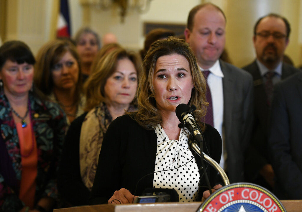 The state politicians were joined by Adams County Commissioner Eva Henry, who spoke in favor of the proposal, and Erin Martinez, whose husband and brother were killed when her home exploded in 2017.