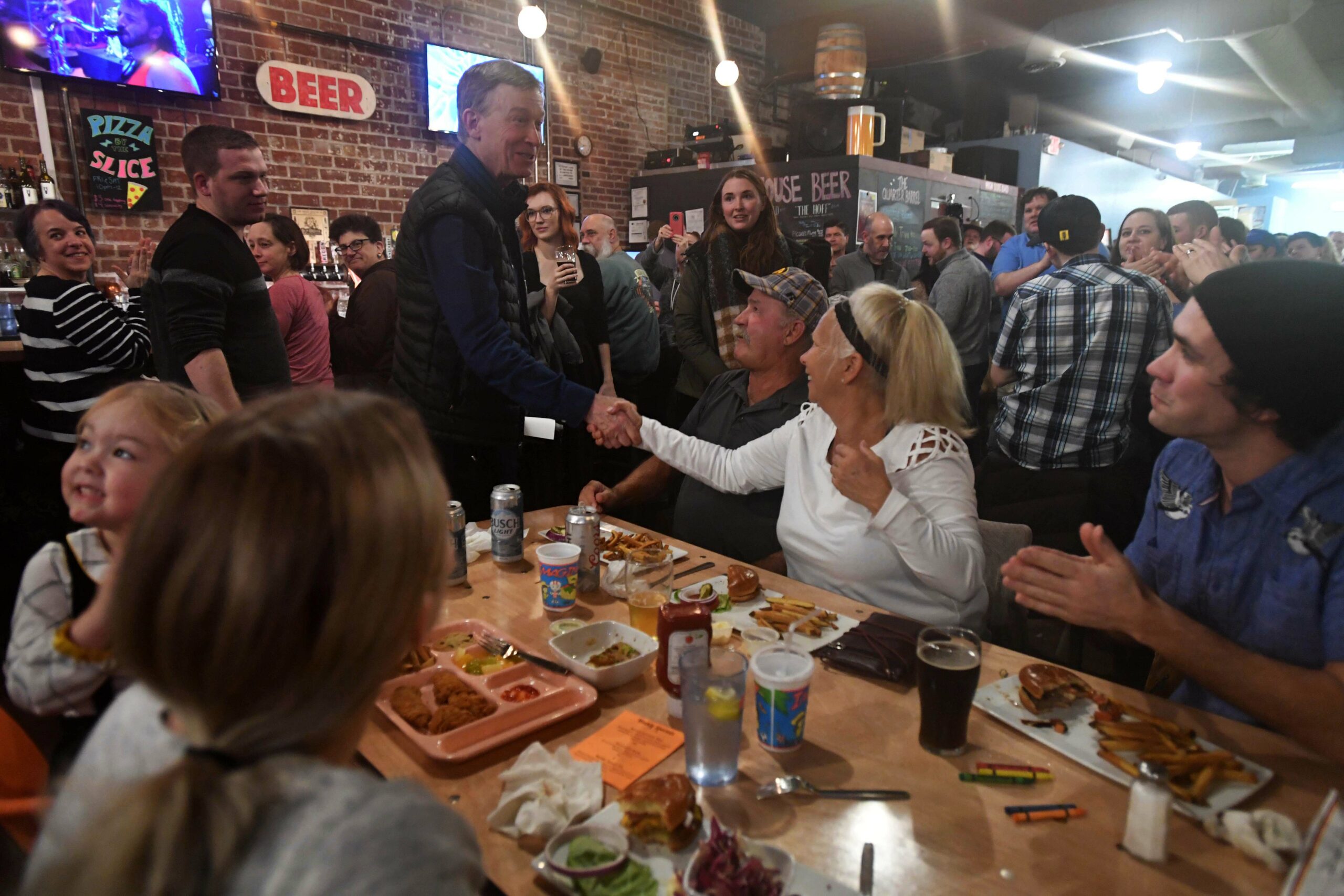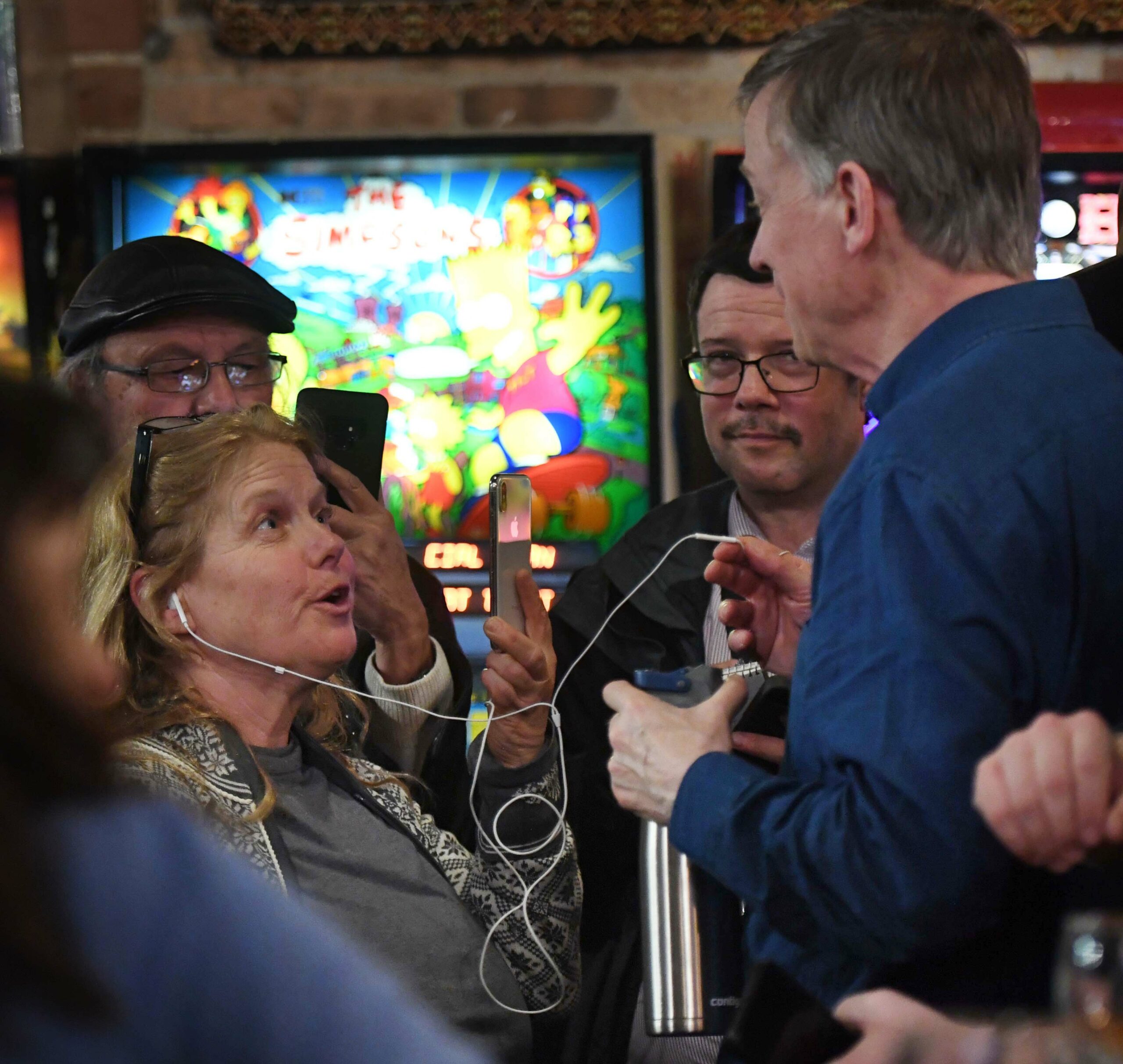 The last meet and greet of the day was held in the backroom of a noisy brewpub/arcade in this city of 132,200. While pinball machines dinged away, Hickenlooper, who by then was growing hoarse, spoke with the help of a microphone to about 100 gathered to hear his story, from geologist to brewpub owner to mayor to governor.