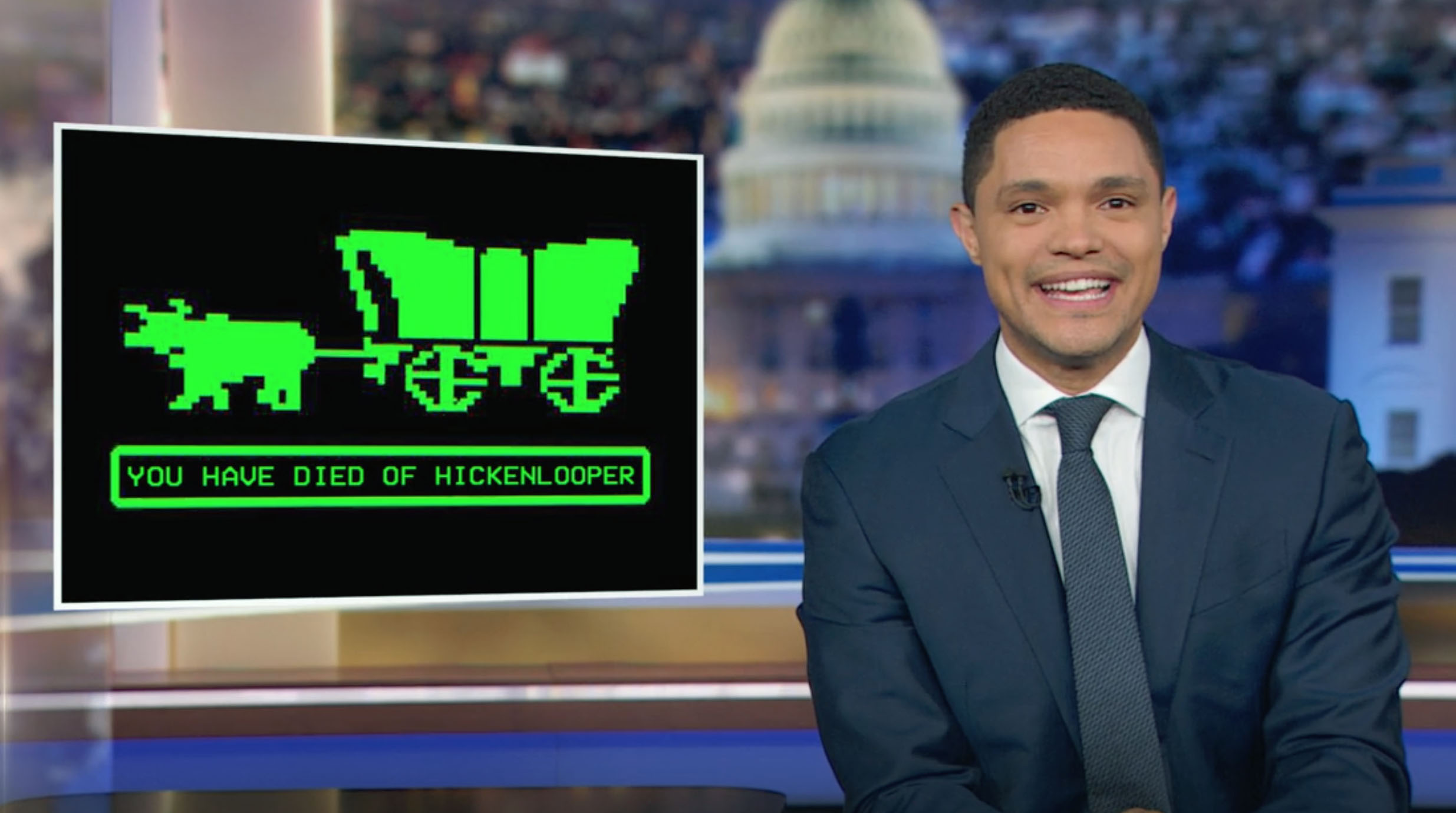 Hickenlooper got “The Daily Show” treatment on Monday, when host Trevor Noah said the candidate has “a name that sounds like a disease you got on the Oregon Trail” as a doctored graphic from the popular 1980s computer game about the travails of pioneers loomed over his shoulder.