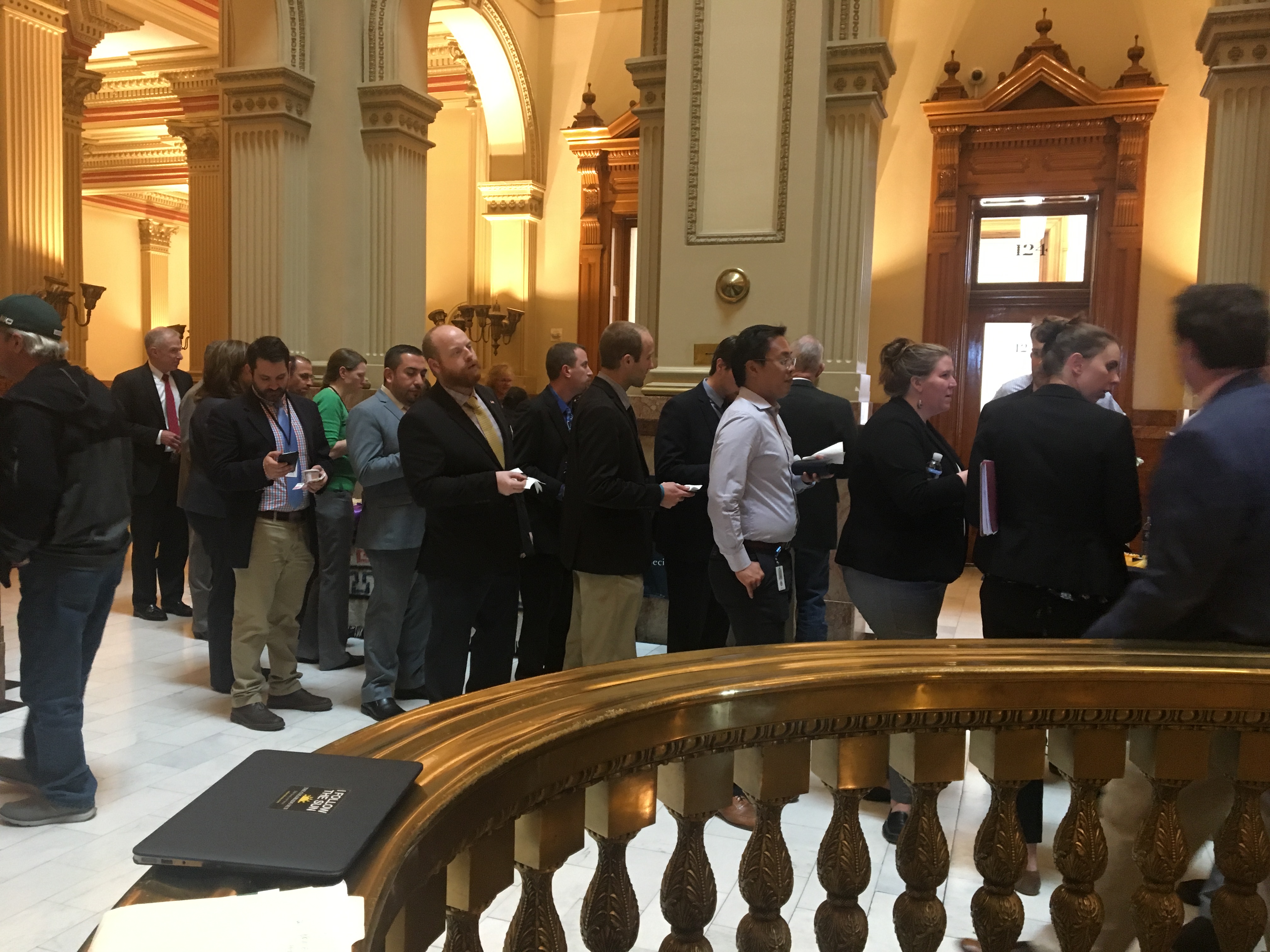 So was the food good? Just take a gander at the hundreds who lined up from one end of the first floor of the state Capitol to the other. Everyone – lawmakers, aides, visitors (and even reporters) – are invited to partake.
