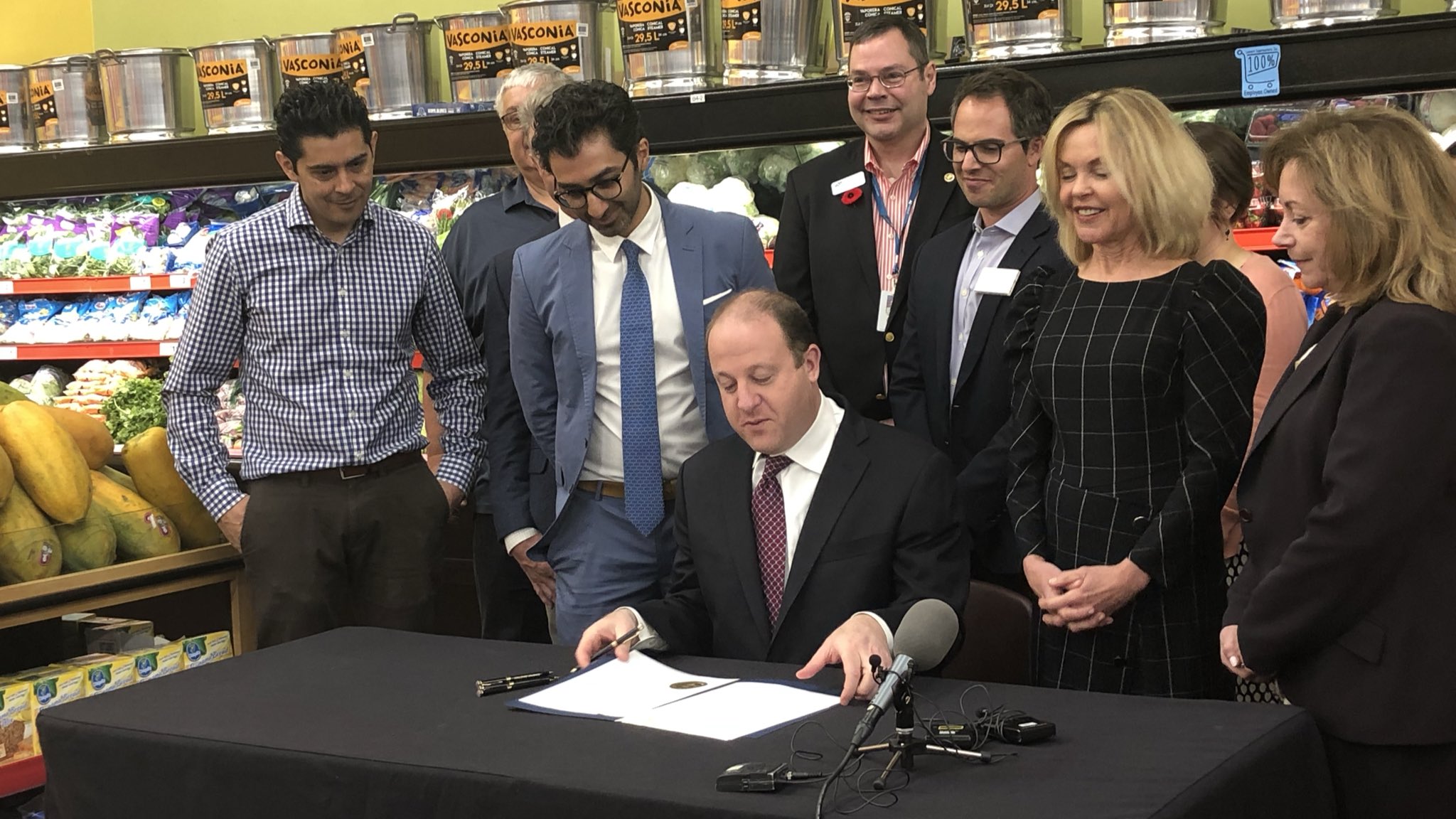 COLORADO SPRINGS – Gov. Jared Polis created a commission Wednesday to boost Colorado’s employee-owned businesses, signing an executive order where he began his gubernatorial campaign nearly two years ago – in the produce section of the Save-A-Lot grocery store on North Academy Boulevard.